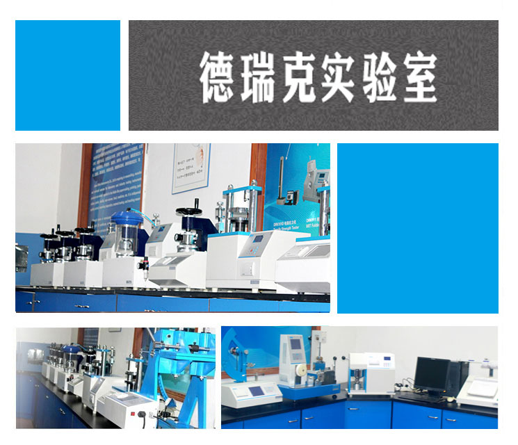 德瑞克除了擁有完善的科研、生產(chǎn)團(tuán)隊(duì)和標(biāo)準(zhǔn)車間外,還擁有一個國際化的標(biāo)準(zhǔn)實(shí)驗(yàn)室。實(shí)驗(yàn)室總面積約200m2,配備了紙品包裝檢測儀器60余臺,總價值超過1000萬元,涵蓋抗壓、強(qiáng)度、拉力、耐破、耐折、厚度、撕裂、柔軟度、戳穿、平滑度、剝離、水分、壓縮、熱封、密封等多類檢測項(xiàng)目。