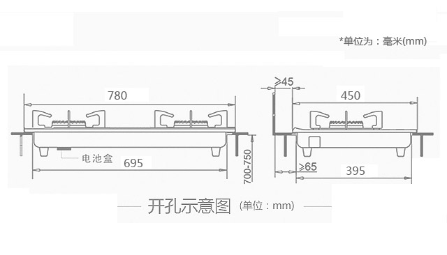 開孔尺寸:695×395(長×寬)mm