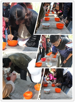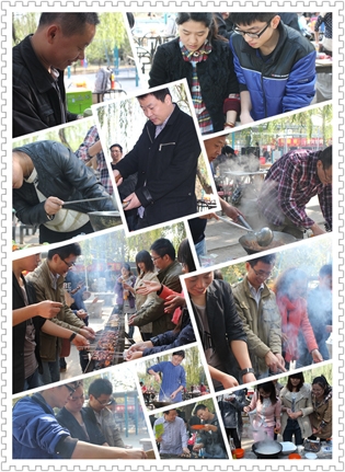 按照游戲規(guī)則,各小組按游戲排名先后順序領(lǐng)取食材進行下一輪的廚藝大比拼,每個小組在備選食材中選兩樣組合成一道菜,并取好與之相符合的菜名。當(dāng)號聲一吹響,全員總動員,洗菜、切菜,點火,開炒,于是整個現(xiàn)場,人頭攢動,摩肩接踵:鍋碗瓢盆的撞擊聲,油鍋里的吱吱聲,還有現(xiàn)場的各種歡笑聲,整個現(xiàn)場再一次被全員的熱情點燃。不到半小時,現(xiàn)場就飄來讓人垂涎欲滴的菜香。首先上菜的是第六小組,他們?yōu)榇蠹覝?zhǔn)備了清爽可口的“春天的希望”,然后依次是第二組,第三組,第五組,第四組,第一組分別為大家呈現(xiàn)的:饕餮大餐鍋爆肉,天女散花,鳳凰展翅,豐碩的果實,珍珠翡翠湯。 六道菜葷素搭配,色香味各俱特色,相得益彰。拉票環(huán)節(jié),各小組代表分表講解了菜名的意義,妙語連珠,字字如珠璣,擲地如有聲。贏得陣陣喝彩。最后,經(jīng)過美食評委團認(rèn)真評議,第一組的“珍珠翡翠湯”贏得了評委會的青睞,獲得了美食大獎第一名。