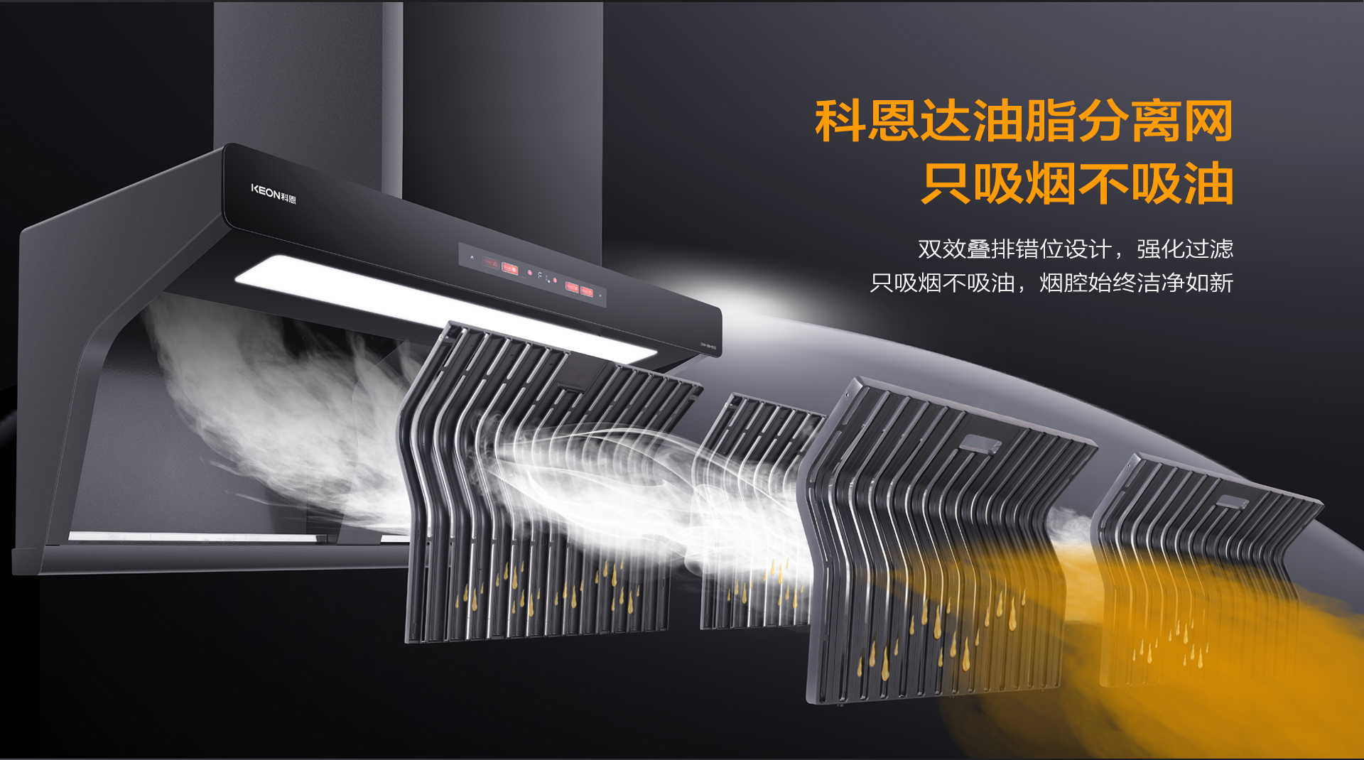 2023年6月,科恩免清洗煙機問世,科恩達(dá)網(wǎng)板再添核心技術(shù),科恩達(dá)油脂分離網(wǎng)就此誕生。科恩達(dá)油脂分離網(wǎng)采用易潔太空壓鑄鋁材,經(jīng)過酸洗-噴砂工藝加之特氟龍噴涂最后高溫?zé)Y(jié),不僅不沾油、易清潔更好打理。其采用獨特的多層疊排U型錯層結(jié)構(gòu)設(shè)計,實現(xiàn)油脂分離度高達(dá)96%以上(第三方權(quán)威機構(gòu)測定),它在高效解決油煙油脂分離和冷凝的同時,還能很好地起到防火阻燃的效果,更好解決廚房安全隱患,徹底告別煙機內(nèi)部清洗難題,保證煙機持久大吸力,延長煙機使用壽命。