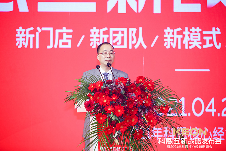 一場(chǎng)震撼全場(chǎng)的沙畫表演后正式會(huì)議正式開始,科恩電器董事長(zhǎng)俞鋒率先上臺(tái)致辭,首先對(duì)現(xiàn)場(chǎng)所有人表達(dá)了誠摯的感謝。2021年科恩電器將乘風(fēng)破浪拉開新帷幕,開啟全新篇章。隨后,科恩電器營(yíng)銷總經(jīng)理趙漢斌發(fā)布“五新戰(zhàn)略”:新門店、新團(tuán)隊(duì)、新模式、新目標(biāo)、新未來!不忘初心,方得始終,一起開創(chuàng)新時(shí)代、新征程!