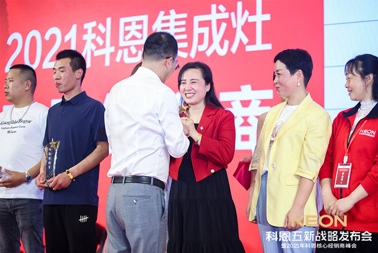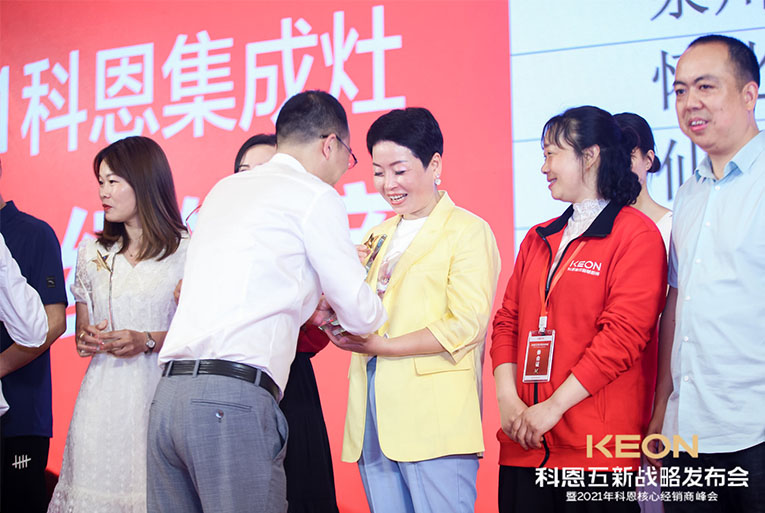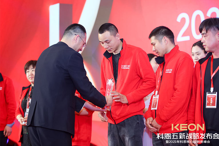 來(lái)自全國(guó)各地的獲獎(jiǎng)經(jīng)銷商登臺(tái),雙手接下榮譽(yù)獎(jiǎng)?wù)?,這份榮譽(yù)代表著他們堅(jiān)守著不變的信念,對(duì)科恩事業(yè)永遠(yuǎn)保持熱忱之心,行動(dòng)和成績(jī)是他們給予的優(yōu)秀答卷??贫麟娖靼l(fā)展至今,離不開(kāi)全國(guó)所有經(jīng)銷商們的共同努力,同心同行、攜手再創(chuàng)下一個(gè)黃金十年!