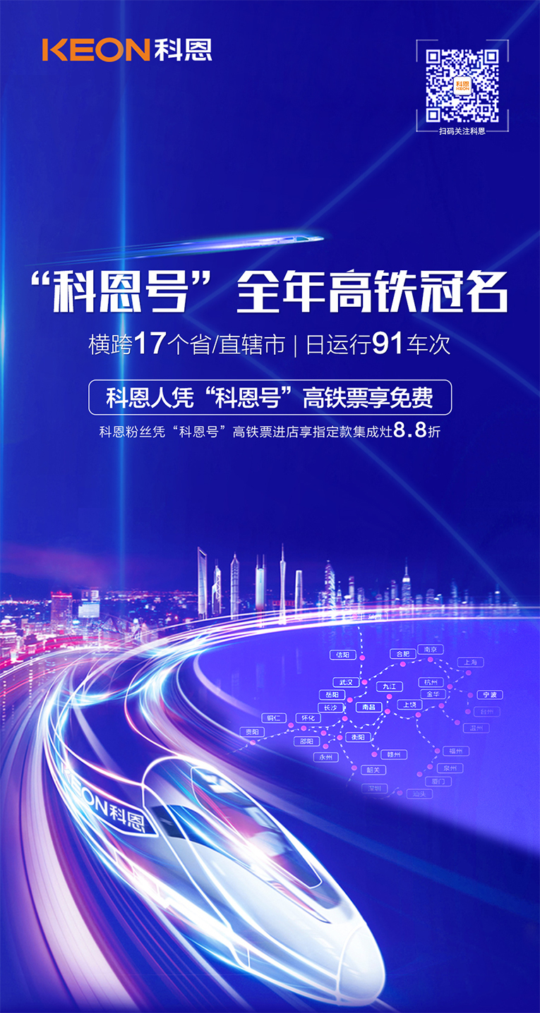 搶占品牌傳播高地,搭載中國(guó)高鐵速度,科恩速度永不止步!憑借強(qiáng)勁的產(chǎn)品競(jìng)爭(zhēng)力和傳播力,向更多消費(fèi)者展現(xiàn)“集成灶就選科恩大吸力”以及“樂(lè)享智慧烹飪”體驗(yàn),實(shí)現(xiàn)品牌騰飛!另外,乘坐“科恩號(hào)”將享受專享福利:①科恩代理商憑乘坐“科恩號(hào)”高鐵票或拍攝小視頻享受車費(fèi)免費(fèi)!注:素材需回傳至 浙江科恩電器有限公司 微信公眾號(hào)。具體操作如下:打開(kāi)微信→搜索 浙江科恩電器有限公司 微信公眾號(hào)并關(guān)注→點(diǎn)擊左下角 小鍵盤 →再點(diǎn)擊右邊 +號(hào) →選擇照片點(diǎn)擊相冊(cè)視頻發(fā)送。并在聊天框中留下 XX專賣店+姓名+電話(例:紹興專賣店+小明+123456789)。核實(shí)無(wú)誤后將在三個(gè)工作日內(nèi)與您取得聯(lián)系,并發(fā)放福利;②消費(fèi)者乘坐“科恩號(hào)”,憑高鐵票或乘坐視頻進(jìn)科恩集成灶全國(guó)專賣店享受指定款集成灶8.8折優(yōu)惠!