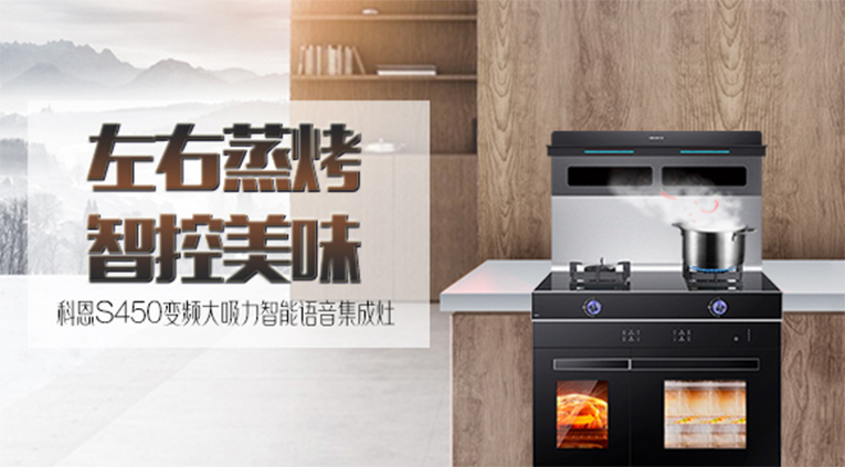 科恩S450左右蒸烤智能語(yǔ)音集成灶全面開啟左烤右蒸新時(shí)代,無(wú)論你是廚房大廚還是廚房小白,都能一鍵定制蒸烤美食,讓美食如約而至!