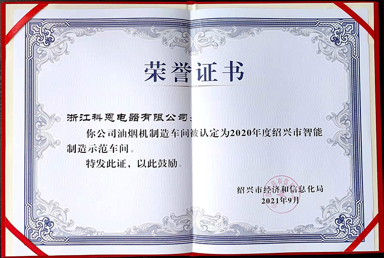進(jìn)一步強(qiáng)化標(biāo)桿示范引領(lǐng),全面提升企業(yè)“新智造”水平,2020年度紹興市傳統(tǒng)產(chǎn)業(yè)智能化改造項(xiàng)目申報(bào)和評(píng)審認(rèn)定工作開(kāi)展,經(jīng)企業(yè)申報(bào)、各地初審、資料審閱、現(xiàn)場(chǎng)踏勘等環(huán)節(jié),浙江科恩電器有限公司油煙機(jī)車(chē)間榮獲“2020年度紹興市智能制造示范車(chē)間”。