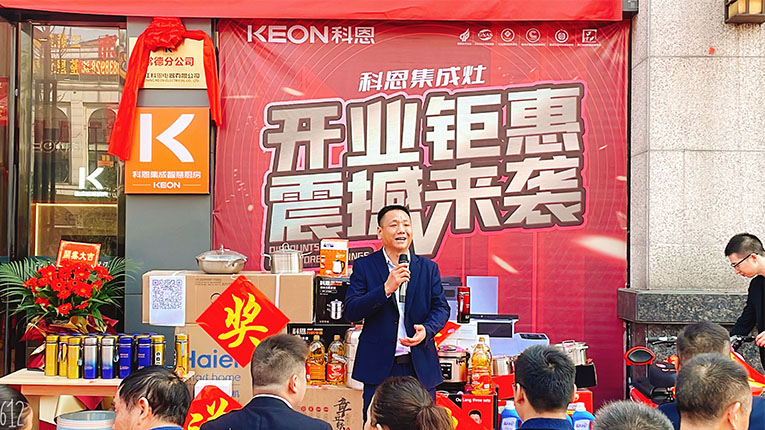 開(kāi)業(yè)現(xiàn)場(chǎng),科恩集成灶銷(xiāo)售總監(jiān)錢(qián)總、總經(jīng)辦陳總、華南大區(qū)、區(qū)域經(jīng)理一同到場(chǎng)參與活動(dòng)。