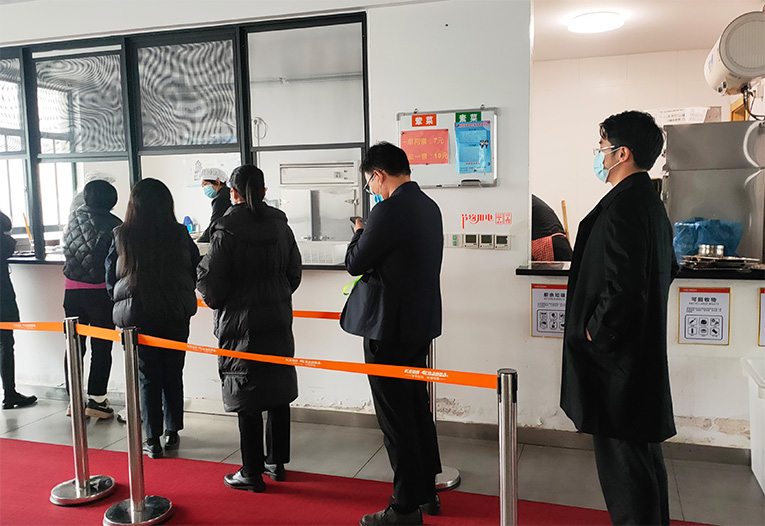 疫情期間,科恩實(shí)行錯(cuò)峰就餐、排隊(duì)取餐保持1米距離、間隔就坐等,保證距離,減少交談。