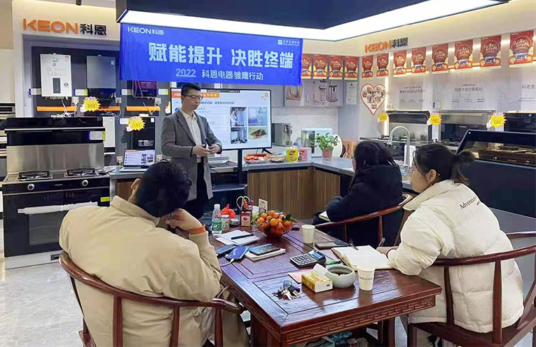 為了能更好地服務(wù)于客戶,2022年科恩集成灶雛鷹行動(dòng)正式開展,雛鷹行動(dòng)旨在深入一線賦能門店,以成熟的體系化方法論和實(shí)踐操作相結(jié)合的模式,手把手幫扶科恩全國門店,與終端進(jìn)行零距離接觸,為經(jīng)銷商進(jìn)行專業(yè)的導(dǎo)購、銷售、活動(dòng)、實(shí)操技能指導(dǎo),全面助力提升科恩集成灶在當(dāng)?shù)氐氖袌龈偁幜Γ?