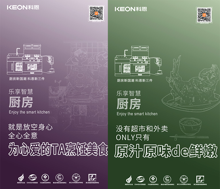 國潮正當時,隨著國貨的崛起,消費者更加開始關(guān)注高端新國貨!科恩集成灶為千萬家庭打造樂享智慧廚房空間,創(chuàng)新設(shè)計、高端品質(zhì)、優(yōu)良服務(wù)、優(yōu)質(zhì)體驗贏得了用戶的高度認可。順應(yīng)“國潮”趨勢,提煉“新國貨新潮牌”理念,結(jié)合“廚房新國潮,科恩新三件”,以滿足現(xiàn)代年輕群體對國貨的審美與品質(zhì)認知,以匠心科技實現(xiàn)現(xiàn)代廚房功能需求。