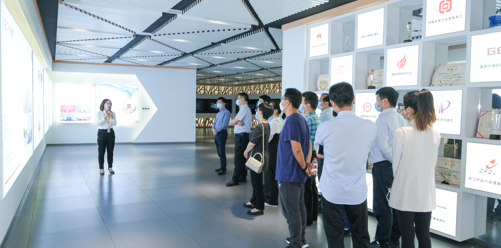 商部長(zhǎng)一行領(lǐng)導(dǎo)在科恩招商部張君麗的講解帶領(lǐng)下,參觀了科恩集團(tuán)的文化長(zhǎng)廊和大型現(xiàn)代化智能展廳,深入了解企業(yè)文化及發(fā)展歷程,詳細(xì)詢問了企業(yè)生產(chǎn)運(yùn)營(yíng)、科研創(chuàng)新、品牌特色、黨建工作等方面情況,并就科恩以科技和感恩為企業(yè)初心,本著共創(chuàng)共贏共享的經(jīng)營(yíng)理念表示了高度認(rèn)可。