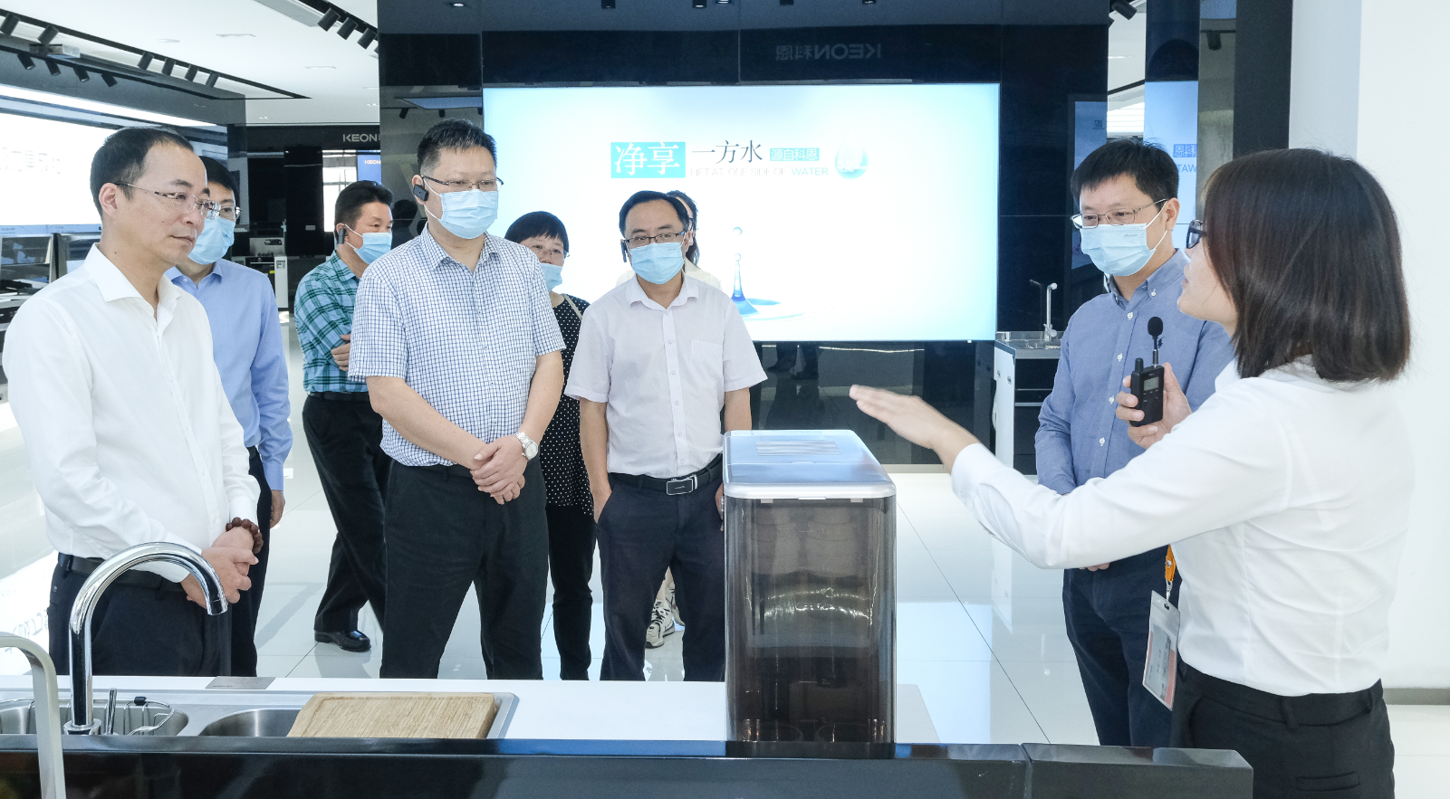 隨后,在俞總的帶領(lǐng)下,領(lǐng)導(dǎo)們參觀了移動(dòng)水吧展廳,對(duì)移動(dòng)水吧“免費(fèi)體驗(yàn)0風(fēng)險(xiǎn),以一抵九多功能,只換不修售后優(yōu)”表示了極大的贊賞和肯定,并詳細(xì)詢問了關(guān)于移動(dòng)水吧的技術(shù)創(chuàng)新、產(chǎn)品研發(fā)和市場(chǎng)營(yíng)銷等情況,充分肯定了科恩電器在產(chǎn)品研發(fā)與市場(chǎng)開拓中的專業(yè)性和嚴(yán)謹(jǐn)性。