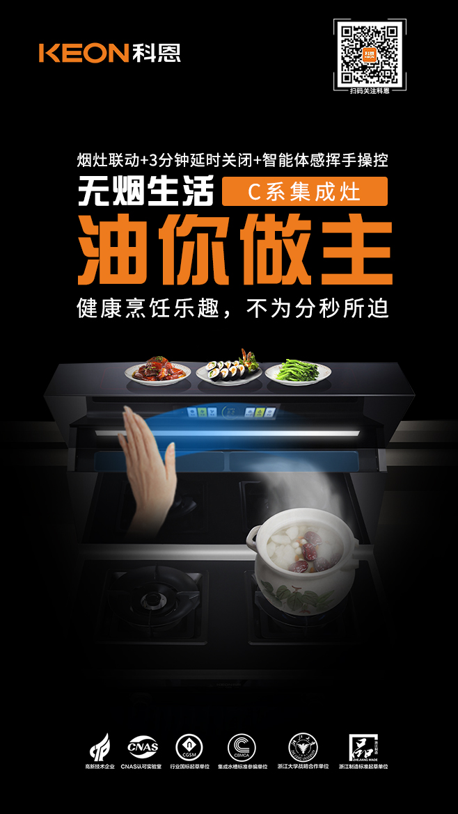 吸煙有害健康已是不爭的事實,近年來大家對于香煙危害已極為重視,但卻鮮少有人知道,其實廚房油煙比煙草危害來得更悄無聲息,特別是在喜歡熱油爆炒的中國家庭,油煙已然一躍成為影響健康的頭號隱形殺手 !告別油煙困擾,遠離油煙綜合征,你需要一臺科恩C260蒸烤消炸集成灶,陪你度過猛火爆炒油煙不過臉的每一天,有了TA,天天都是無煙日!