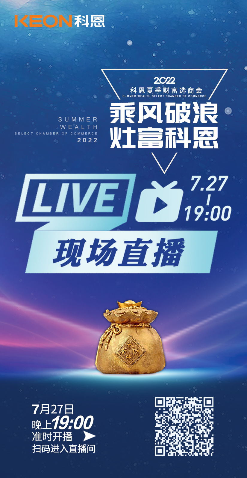 乘風破浪·灶富科恩2022科恩夏季財富選商會進入倒計時1天,鑒于疫情呈多點散發(fā)多地頻發(fā)的形式,科恩電器將于7.27晚19時召開全國直播線上選商會,用直播打破地域局限,“0距離”交流,足不出戶亦能覓得良機!
