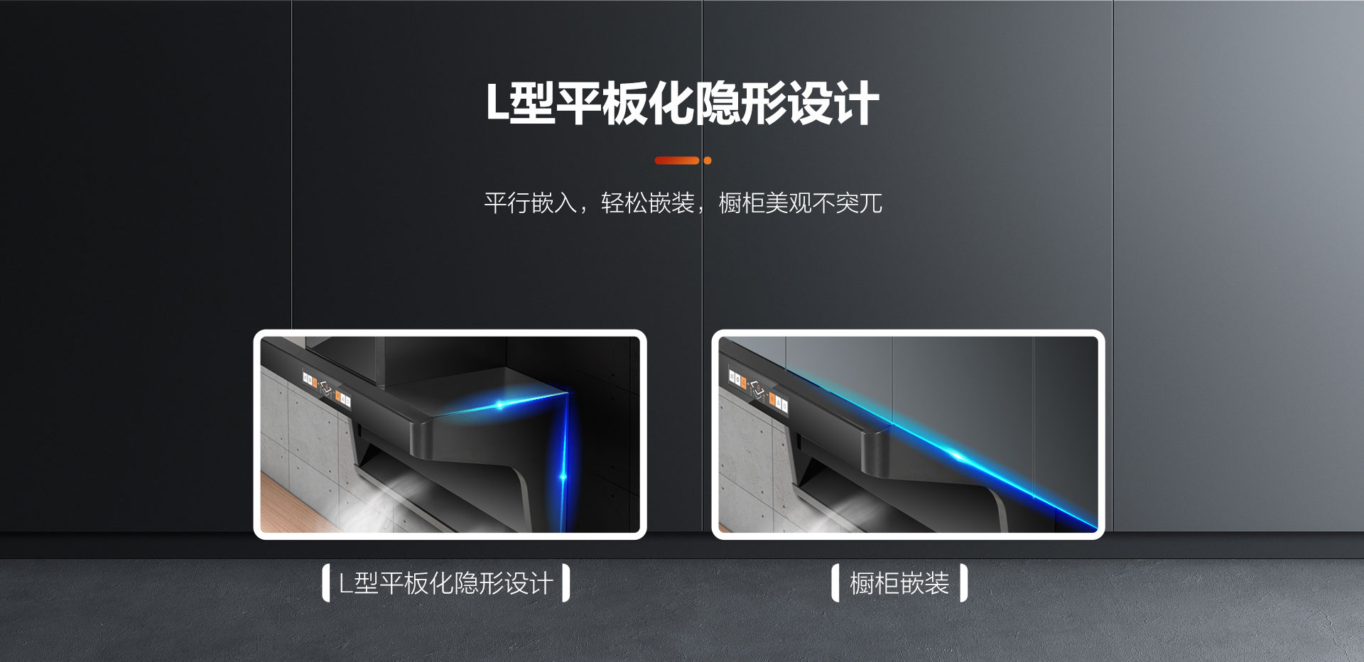 ◆L型平板化隱形設(shè)計(jì),與櫥柜完美結(jié)合,不僅能釋放更多的廚房烹飪空間,還解決了煙機(jī)“碰頭”的難點(diǎn),人性化的設(shè)計(jì)更符合中國(guó)式家庭廚房的使用。