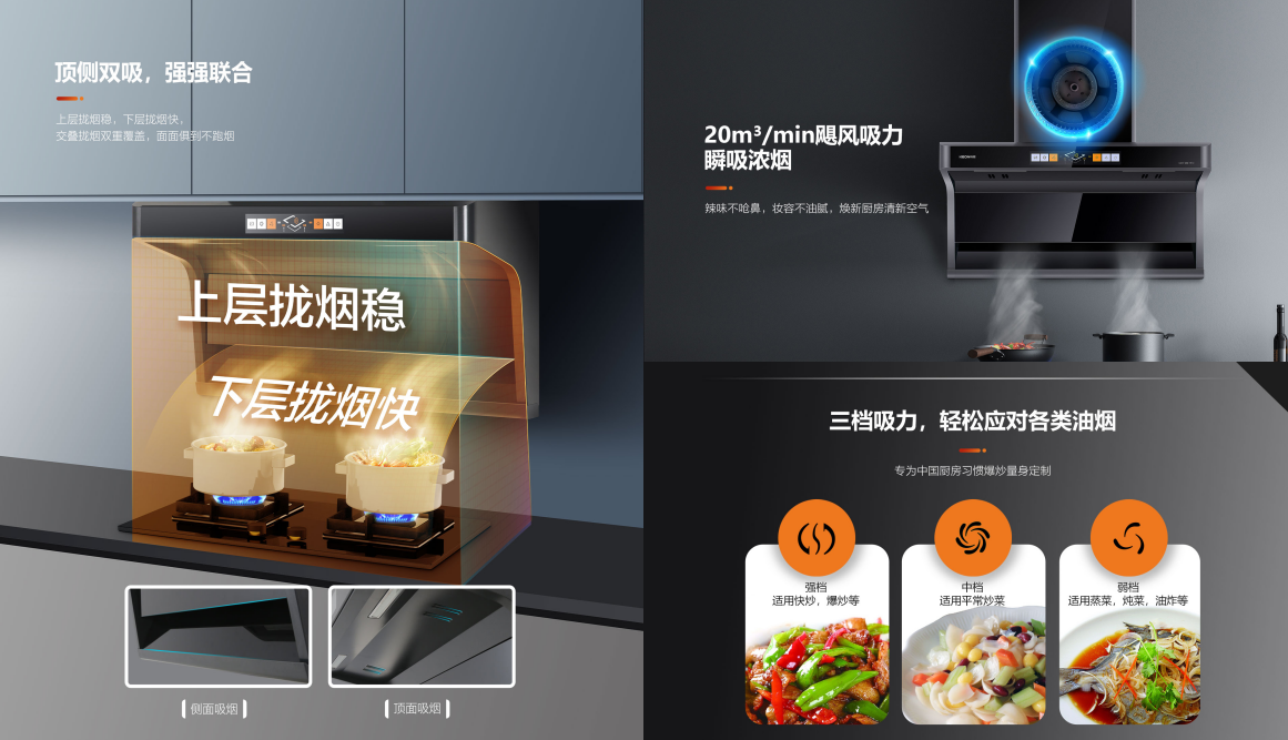 頂側(cè)雙吸、外觀出眾、性能一流!一款優(yōu)秀的煙機(jī),不僅能夠輕松解決廚房油煙問題,更能把生活里的詩(shī)和遠(yuǎn)方裝點(diǎn)進(jìn)沉悶廚房,揉入三餐四季,烹出心生歡喜!