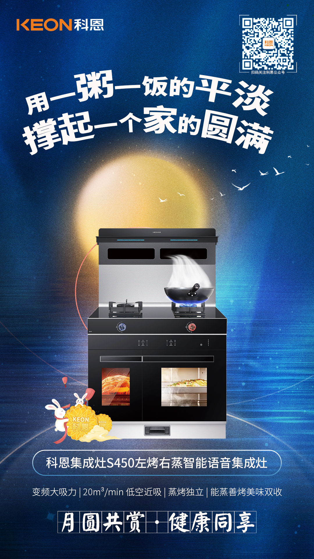 不敷衍食物,不敷衍生活,不辜負(fù)時(shí)光。用一臺(tái)科恩S450左烤右蒸智能語音集成灶,智能變頻巡航系統(tǒng)、20m3/min低空近吸,解除油煙阻礙,讓美食包裹在愛的海洋中,構(gòu)造出屬于自己的王國,用一粥一飯的平淡,撐起一個(gè)家的圓滿。