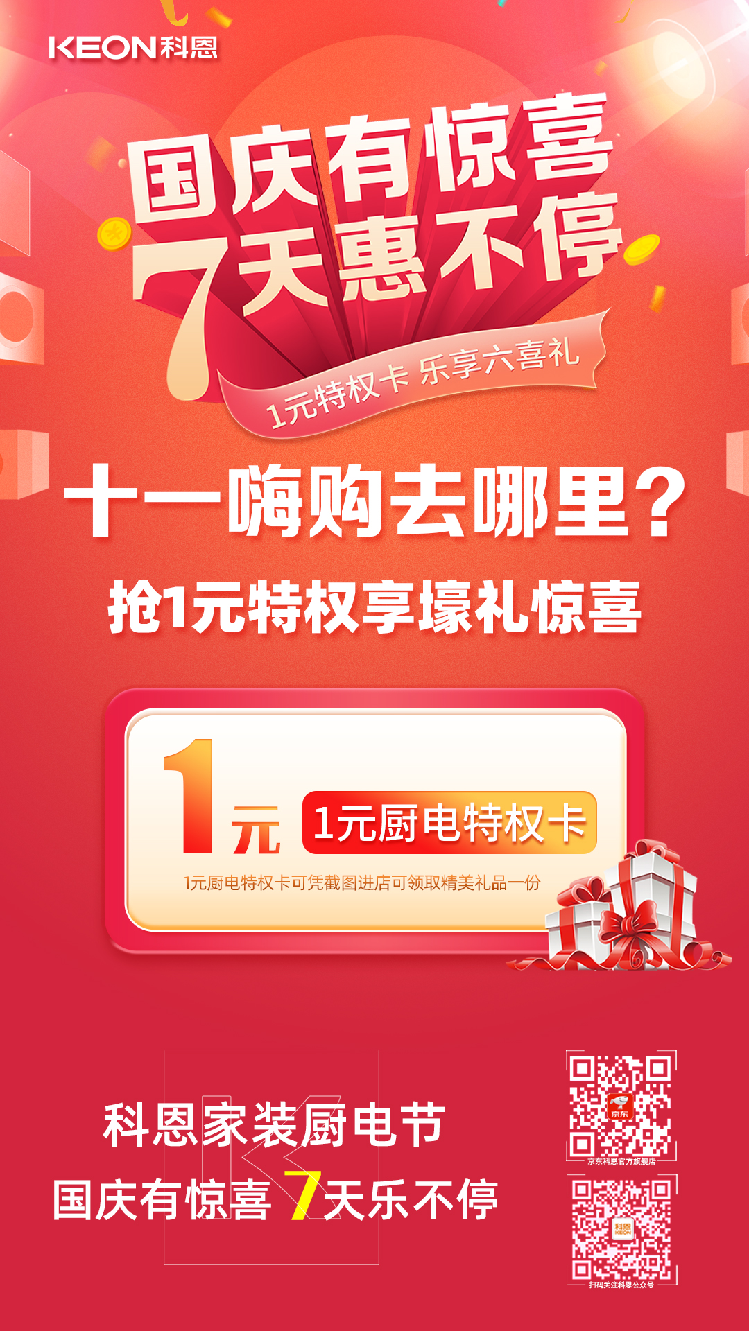 國慶價·提前享,科恩家裝廚電節(jié)之國慶專輯——國慶有驚喜,7天惠不停,科恩集成灶帶你嗨購黃金周!