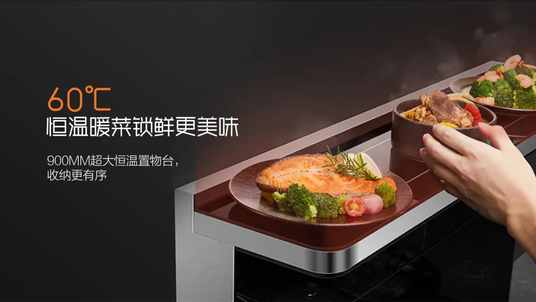A3系列除了實現(xiàn)快速烹飪之外,更在細節(jié)上充分展示了人性化設計。自帶保溫功能的恒溫置物臺,除了能解決廚房收納問題外,更避免了菜肴二次加熱煩惱。