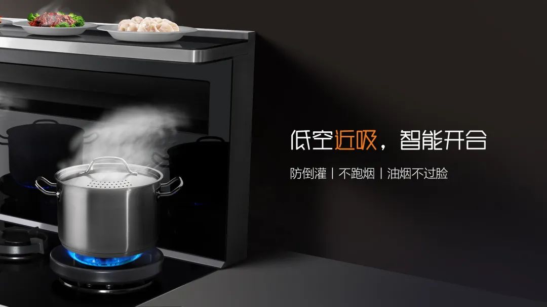 特有的內(nèi)傾科恩達導煙網(wǎng)板不遮擋視線,且形成獨特的吸煙黃金角,讓油煙在鍋口就被吸走,0跑煙,廚房更清新!