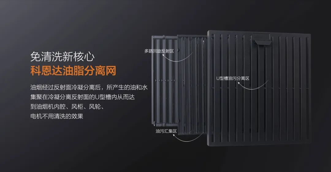 科恩免清洗煙機獨創(chuàng)科恩達油脂分離網(wǎng),采用易潔太空壓鑄鋁材,搭配酸洗-噴砂工藝加之特氟龍噴涂最后高溫燒結(jié),不僅不沾油、易清潔更好打理。在分離油煙的同時,還能阻燃阻熱!