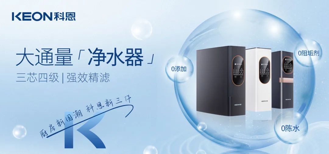 科恩重磅推出7系母嬰級大通量凈水器,主打八大凈水黑科技核心技術(shù),智能護(hù),全家享,為用戶輕松開啟凈水新體驗(yàn)!