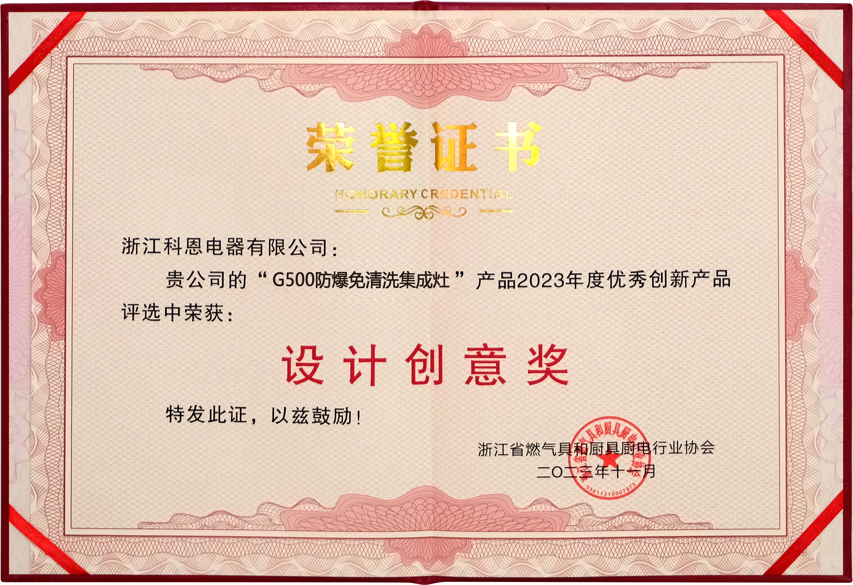 同時(shí),科恩KN700防爆金剛灶、G500防爆免清洗集成灶更是榮獲“設(shè)計(jì)創(chuàng)意獎(jiǎng)”!KN700防爆金剛灶、G500防爆免清洗集成灶均為2023年科恩拳頭產(chǎn)品!