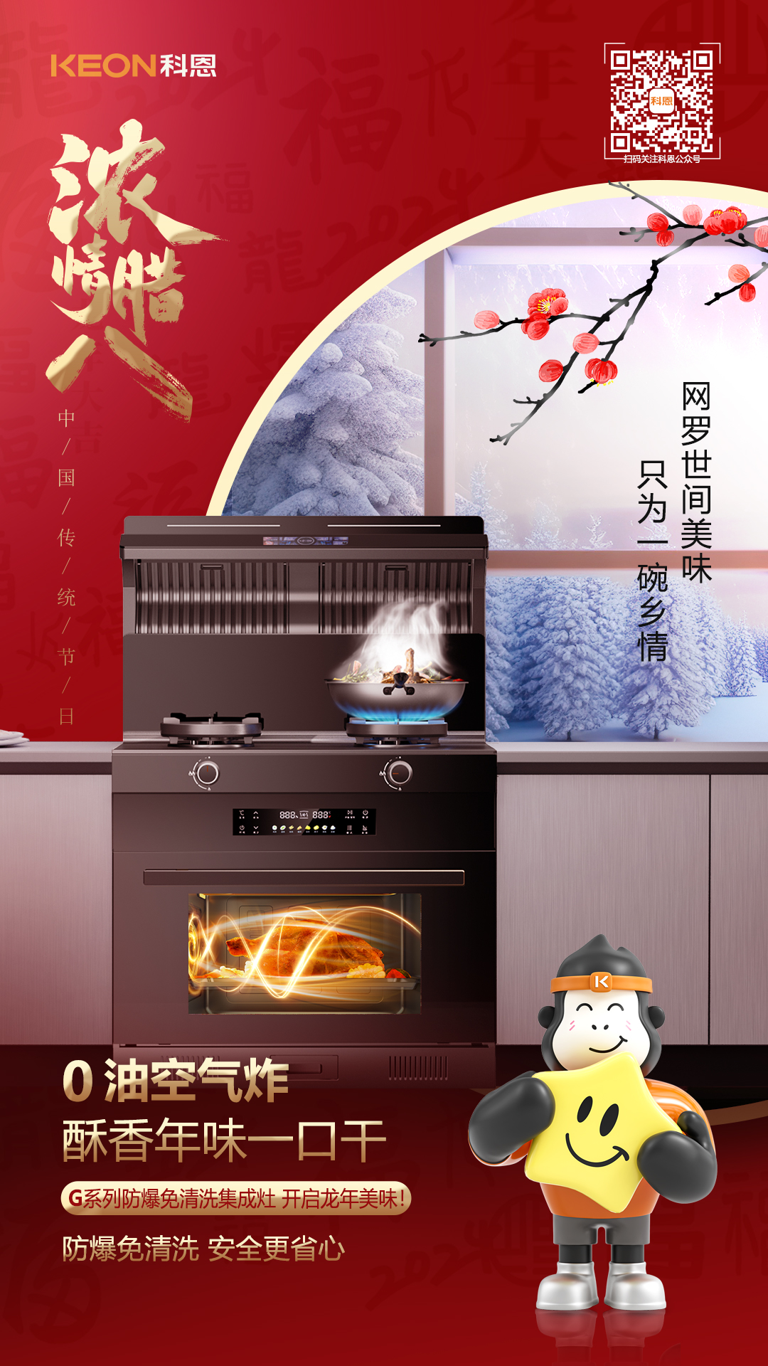 科恩G500防爆免清洗集成灶專業(yè)烘烤,紅外加熱高速升溫,1°C精控,3D立體熱烤,讓你在家也能體會趣味烘焙。