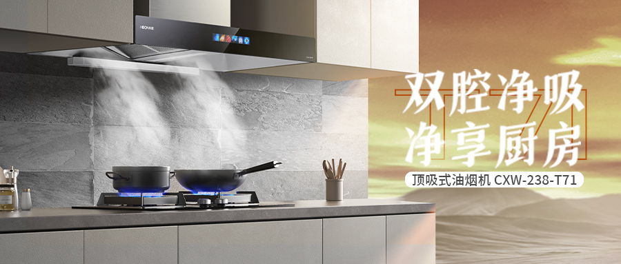 科恩T71油煙機(jī)采用超薄頂吸式,可輕松“隱身”,廚房更具美感。