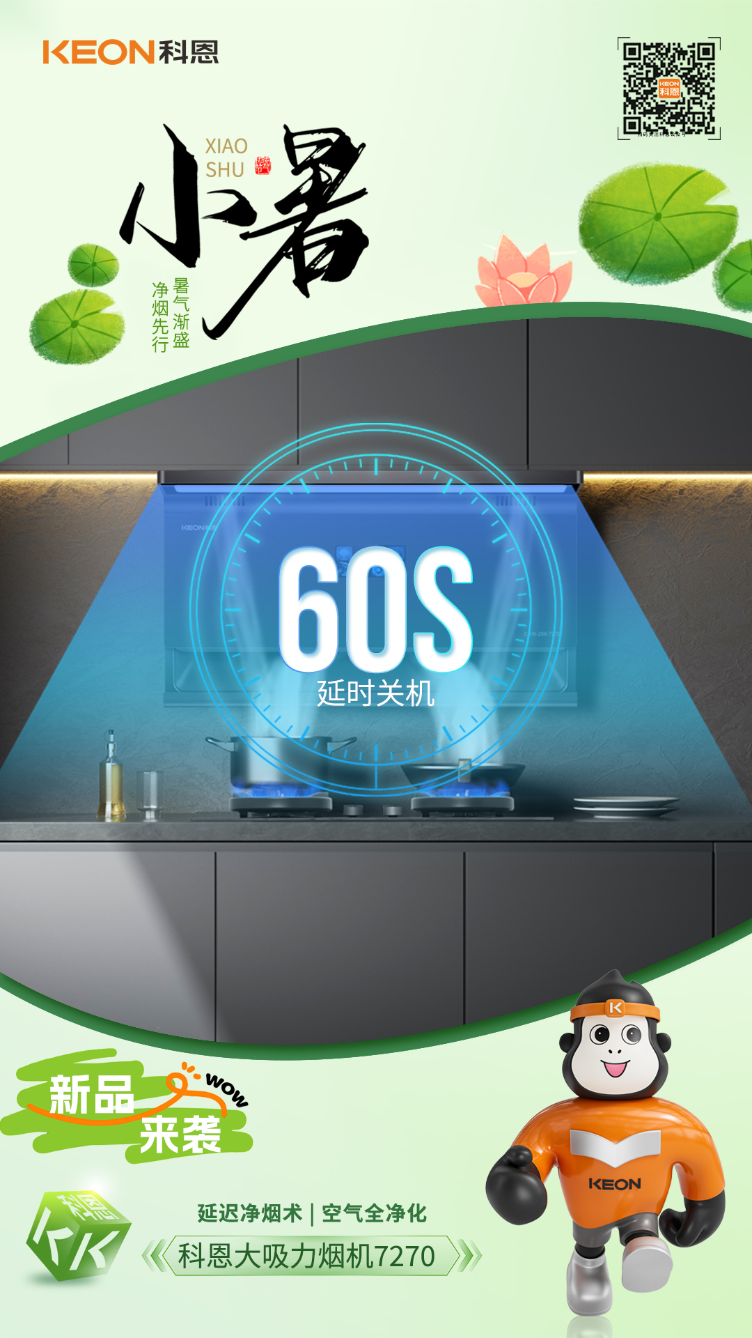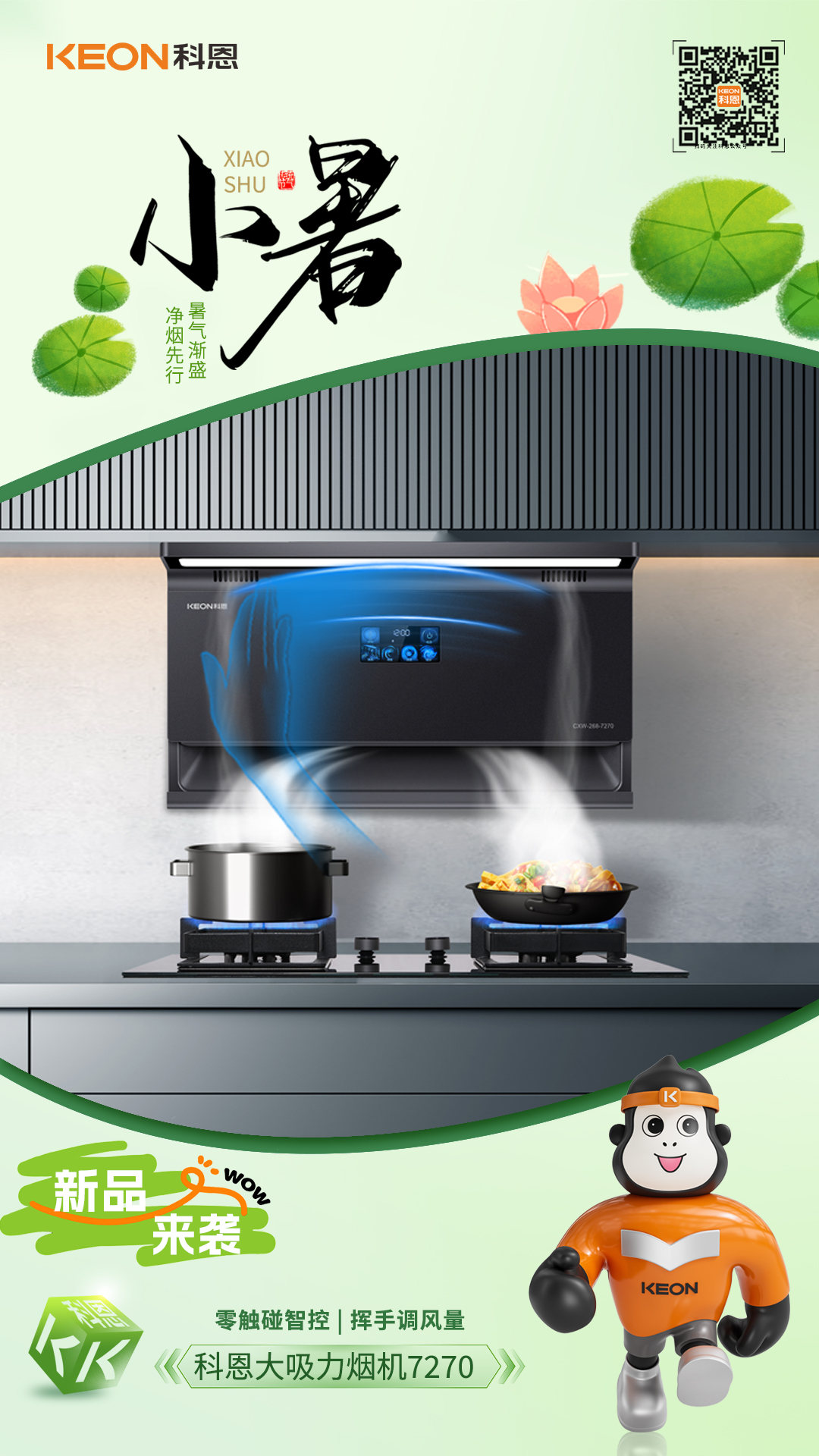 凈煙守護(hù),暑夏清涼。從凈煙到清潔,從性能到顏值,科恩7270煙機(jī)用硬核實力重塑烹飪體驗。讓爆炒的煙火氣,化作生活的詩情畫意,讓每一次下廚,都成為清涼愜意的慢時光!
