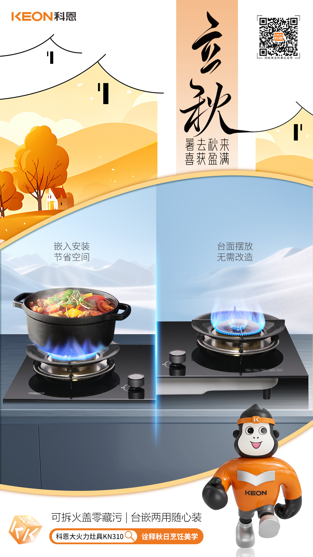 立秋煙火起,灶上煥新時(shí)??贫鹘承耐瞥雒突鹪罹?/span>KN310,以“火候藝術(shù)”重塑廚房烹飪學(xué),讓每一味秋鮮都恰到好處,鎖住時(shí)節(jié)的醇厚與溫情,立秋貼秋膘,灶具煥新正當(dāng)時(shí)!