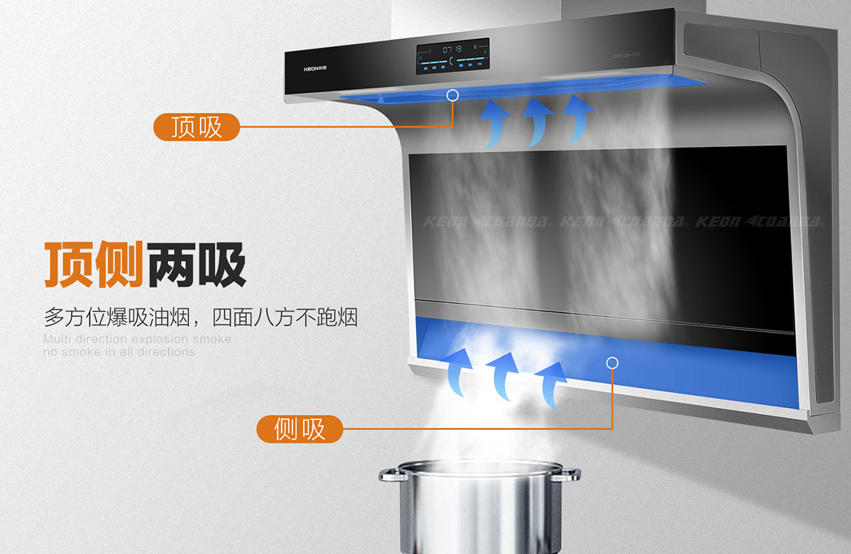 • 頂側兩吸,多方位爆吸油煙,四面八方不跑煙。