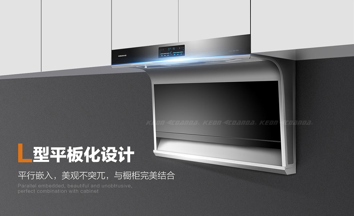 • 特創(chuàng)L型平板化隱形設計,平行嵌入,與櫥柜結合,美觀不突兀。