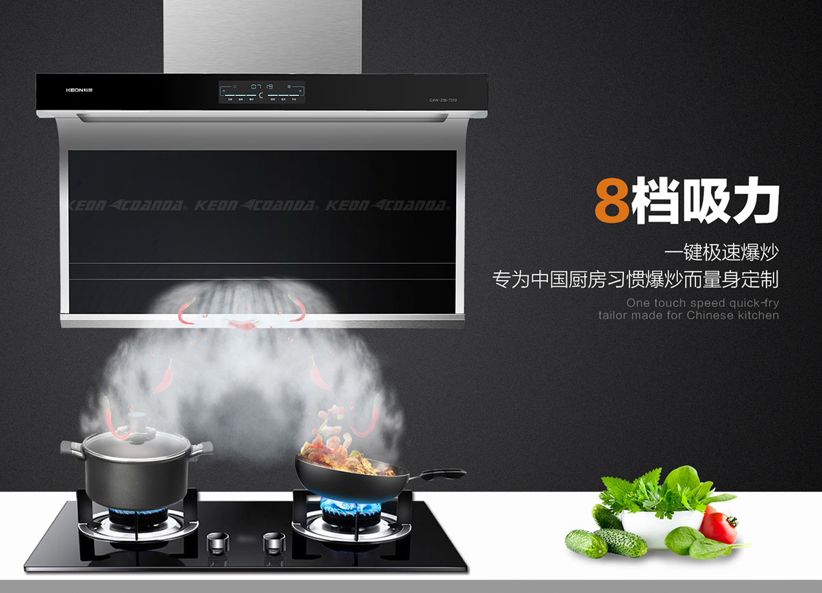 • 一鍵爆炒,8檔吸力,專為中國廚房習慣爆炒而量身定制。