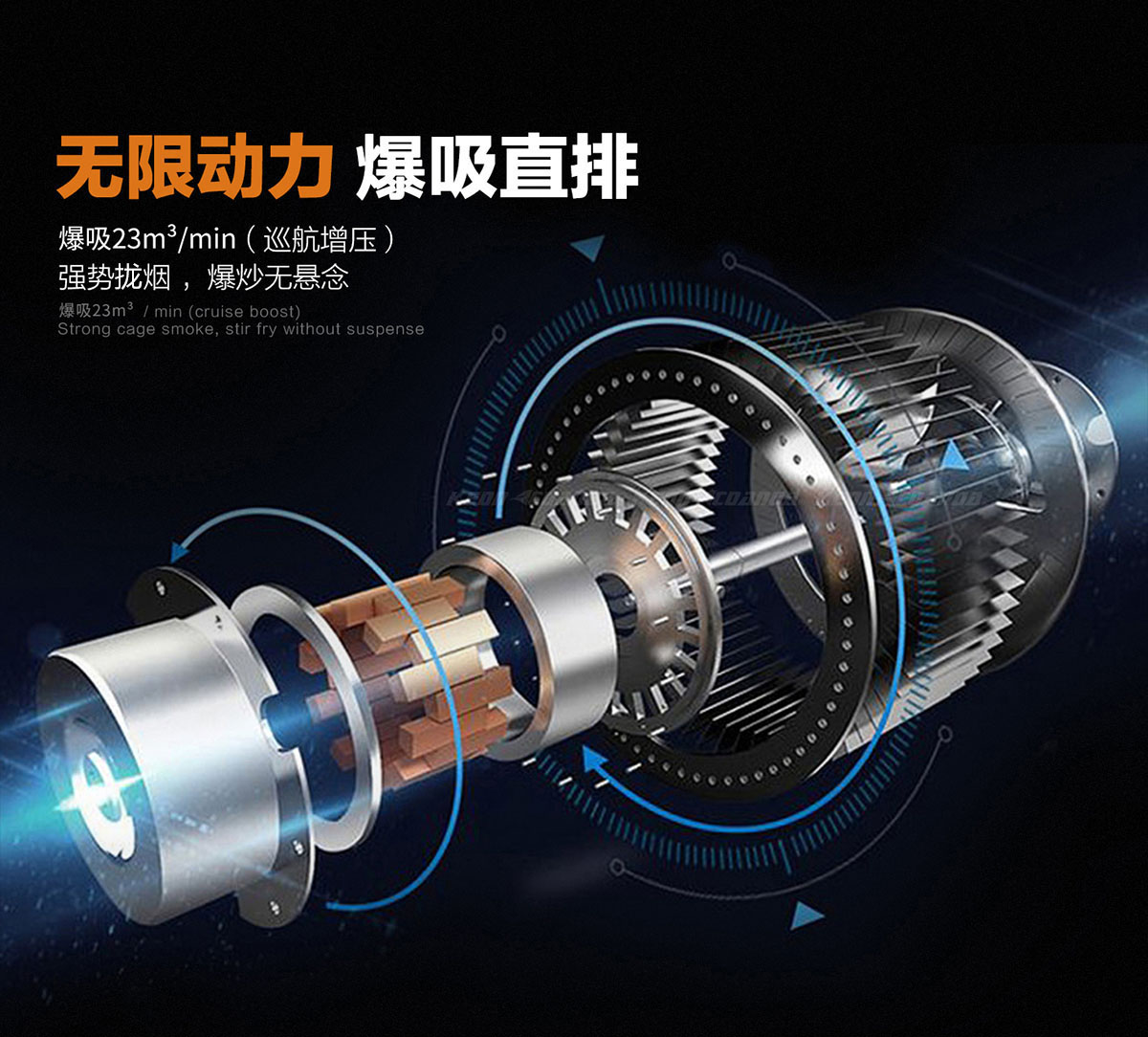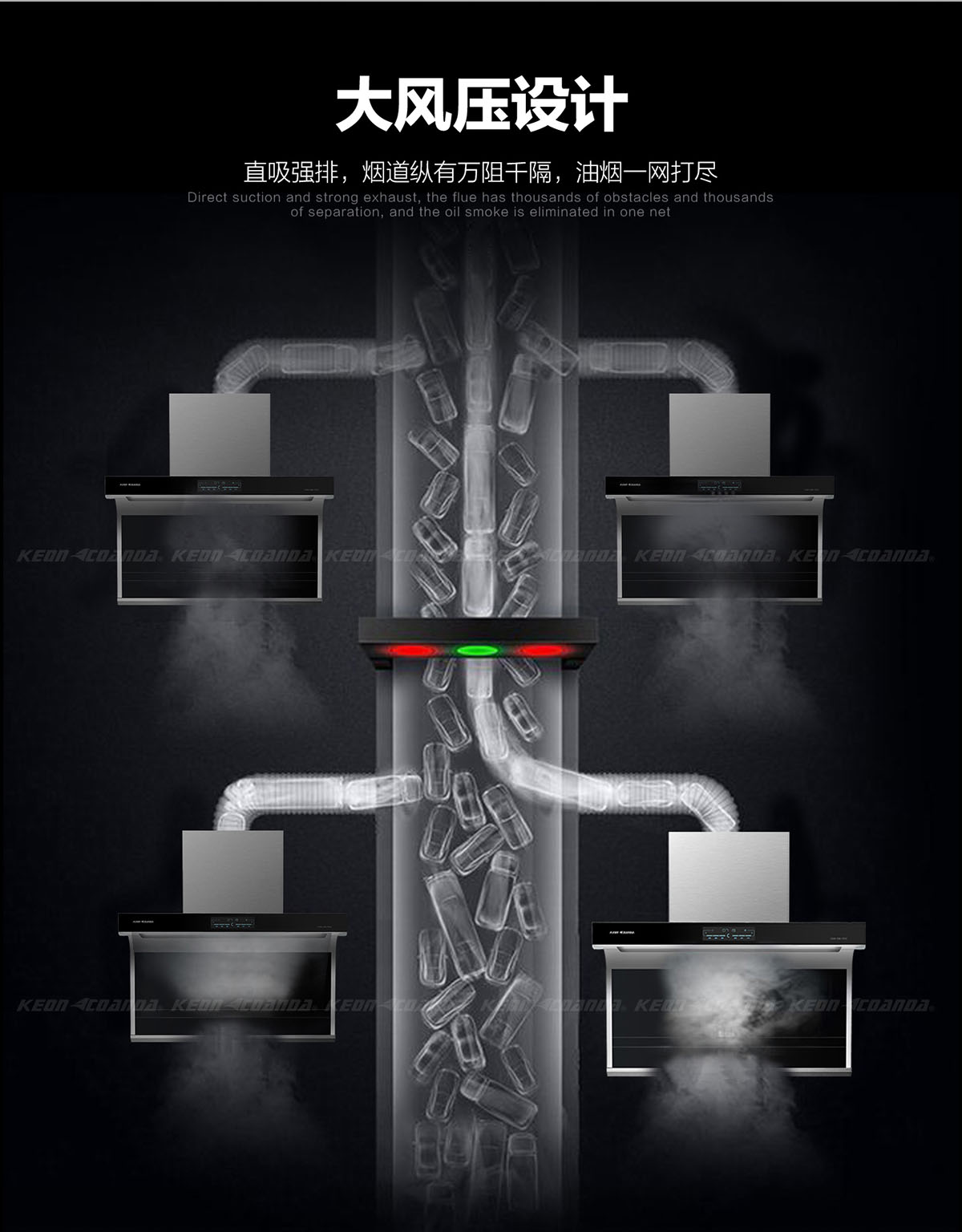 • 強勁風量,超攏煙區(qū),油煙不擴散。