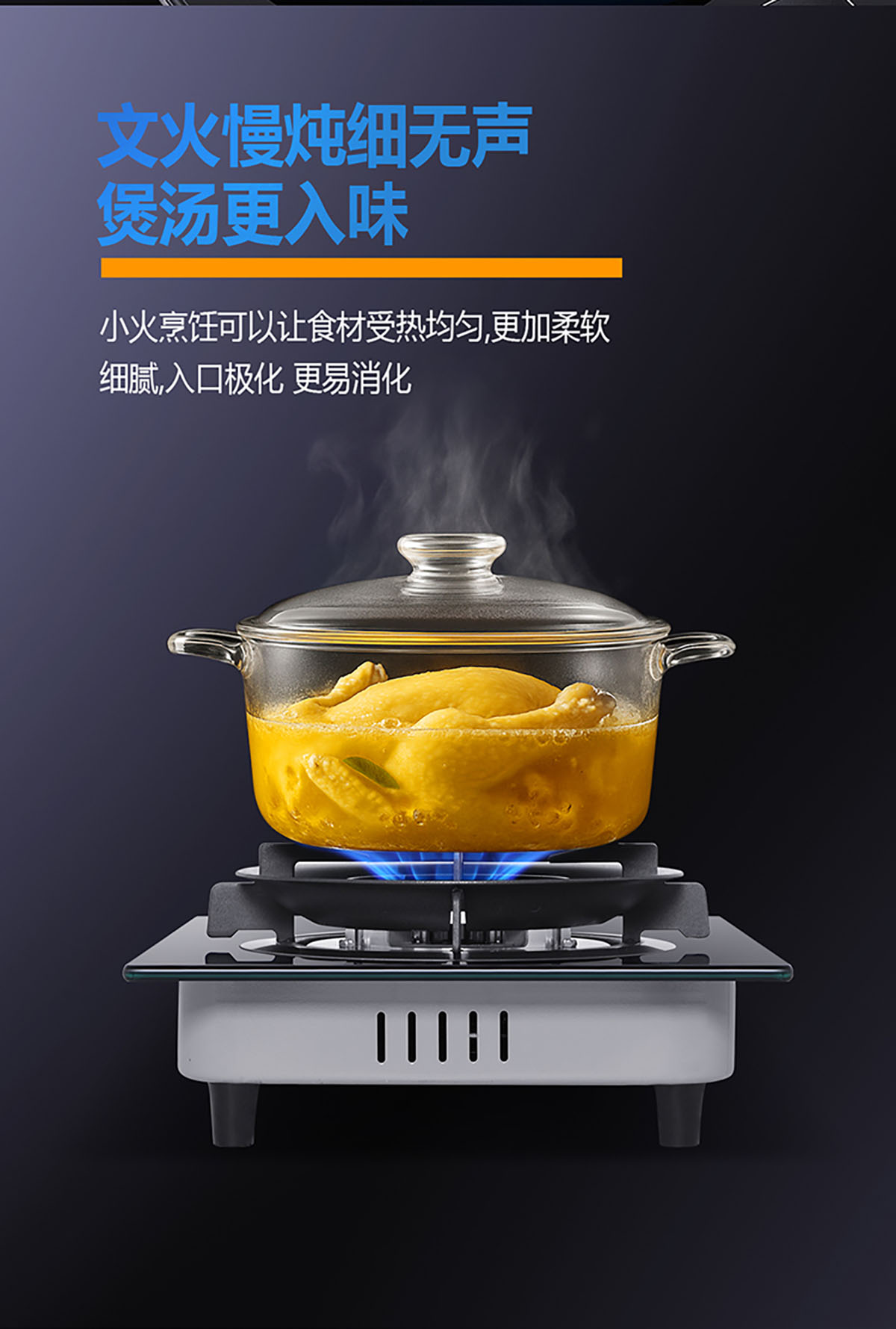 材    質(zhì):玻璃面板、達克羅無瓷化工藝爐頭、搪瓷鍋架
