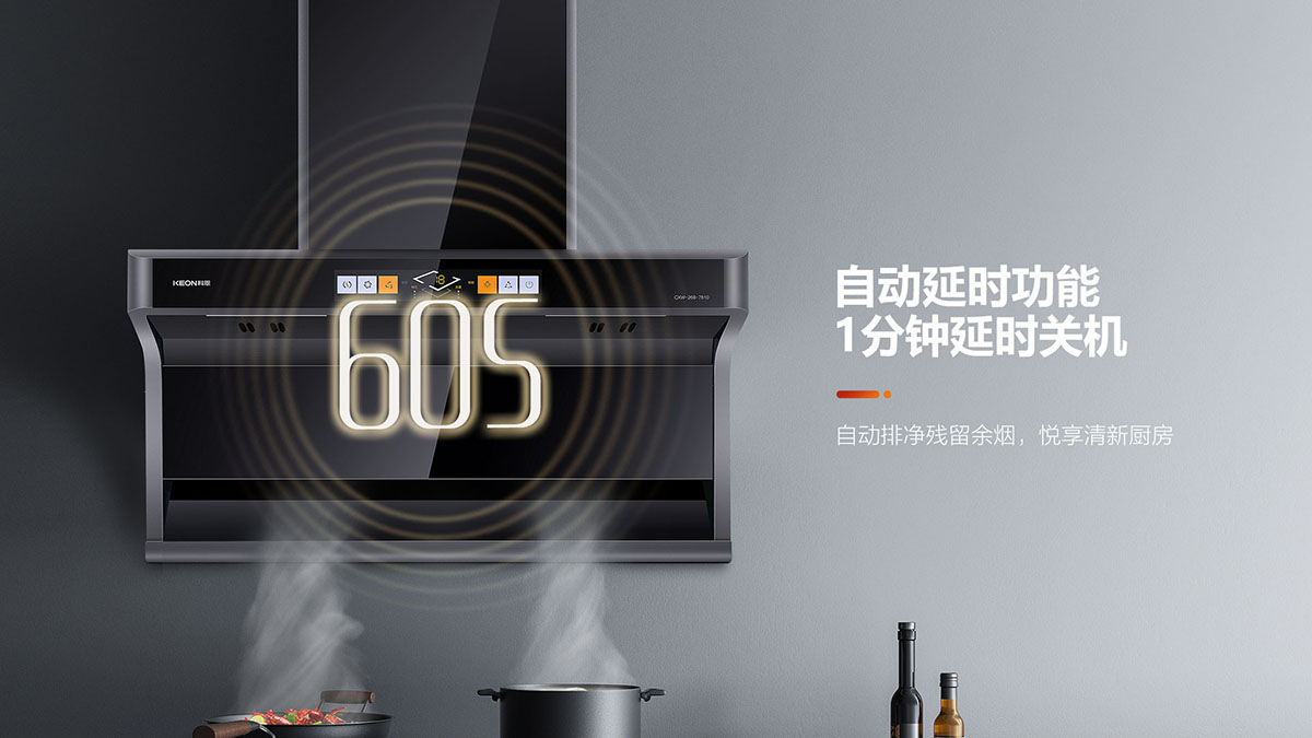 • 自動延時功能,1分鐘延時關(guān)機(jī),自動排凈殘留余煙,悅享清新廚房