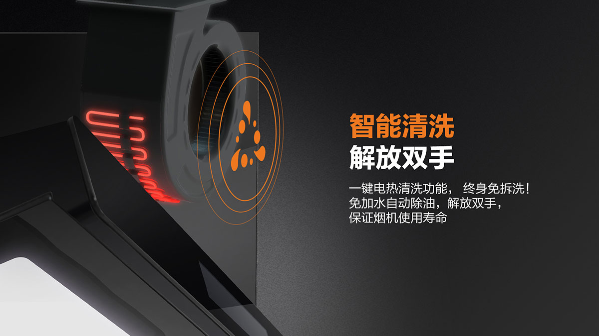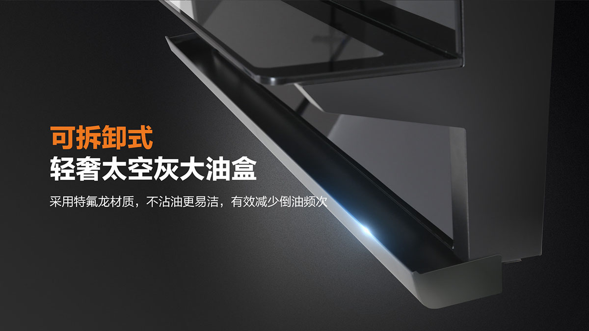 - 獨(dú)特黃金吸煙角,二次冷凝板內(nèi)傾設(shè)計(jì),油煙不過(guò)臉