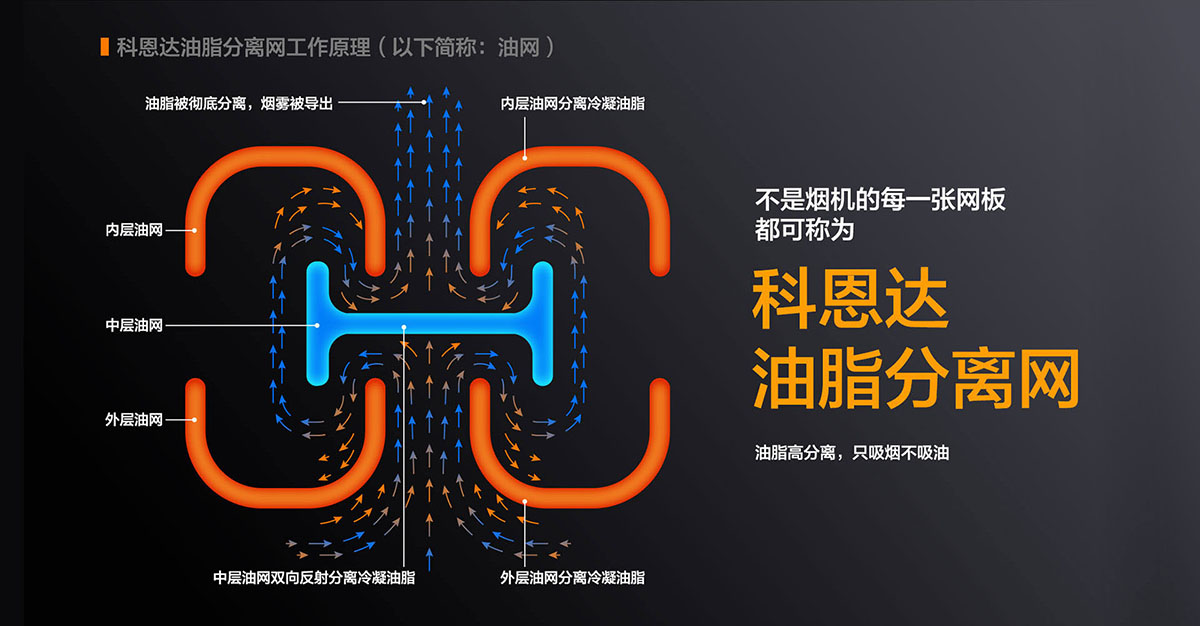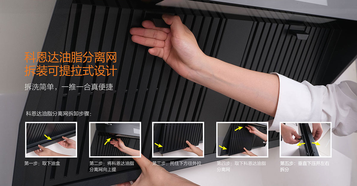 - 科恩達油脂分離網(wǎng)便捷拆裝設計,表面易潔工藝,拆洗簡單