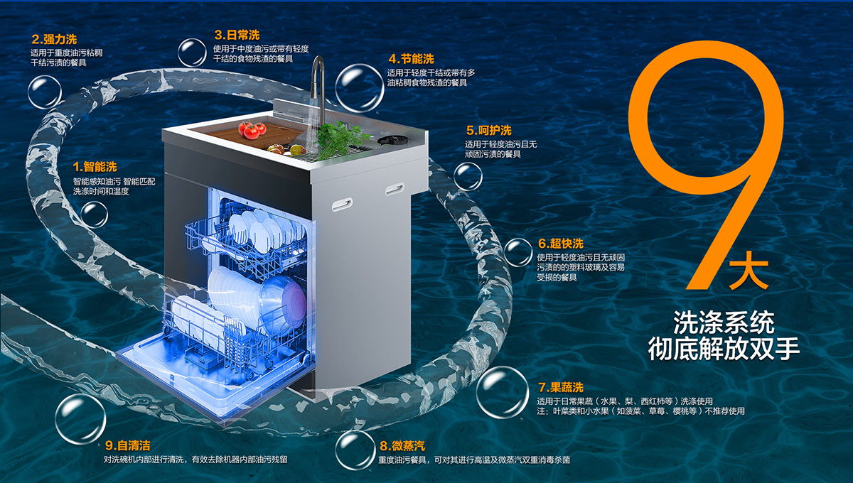• 大洗滌系統(tǒng),滿足洗碗、洗果蔬各種需求