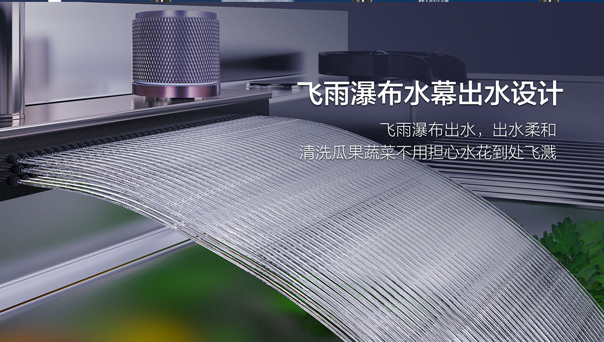 • 飛雨瀑布水幕,快洗蔬菜果皮內(nèi)部及表皮的泥垢、農(nóng)藥殘留