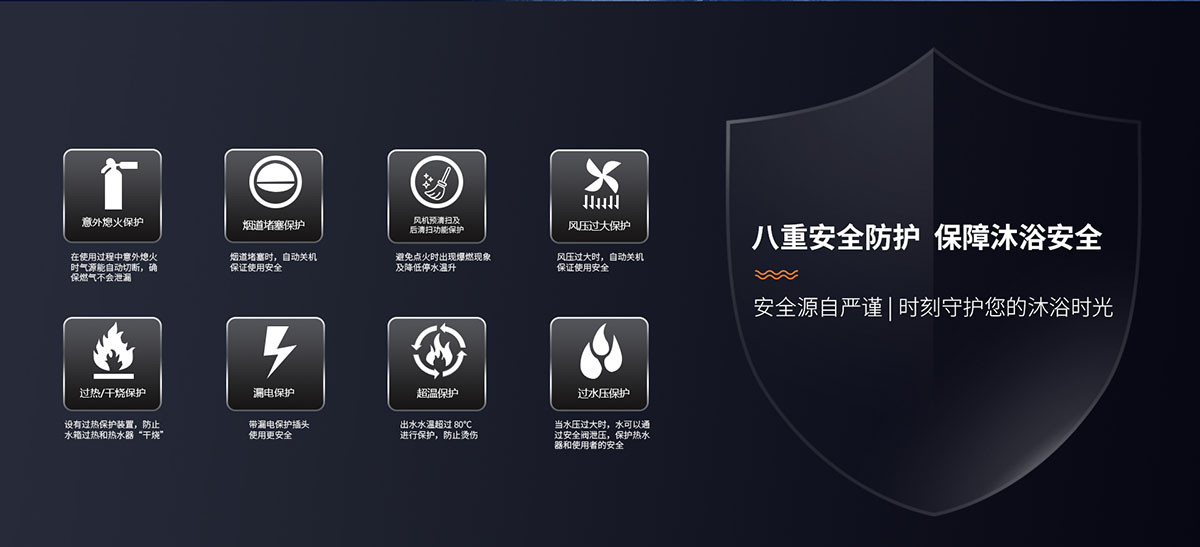 - 安全排氣裝置,當(dāng)意外停電、煙道堵塞時(shí)自動(dòng)關(guān)閉燃?xì)?