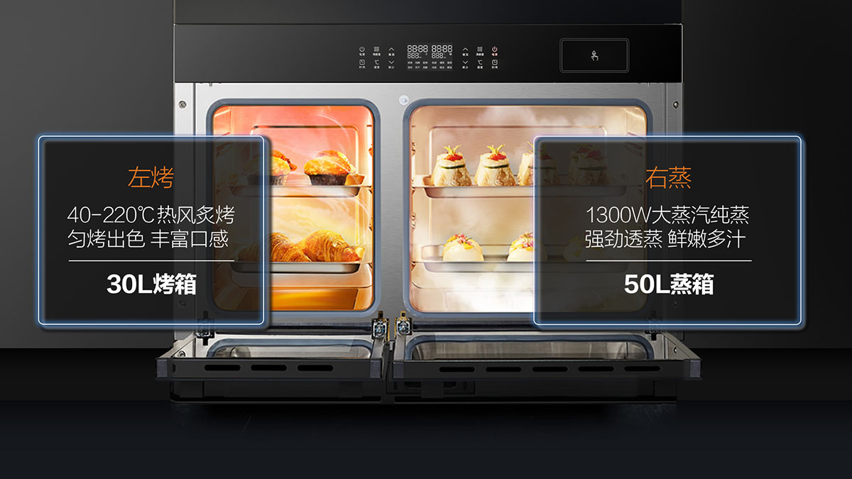 • 蒸烤獨(dú)立,雙管齊下,烹飪更高效