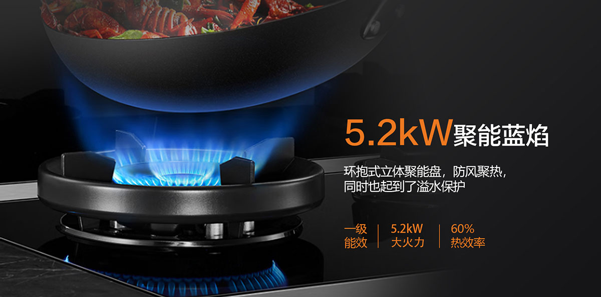 • 5.2kW大火力,左灶120min定時(shí)功能,多檔火力調(diào)節(jié)