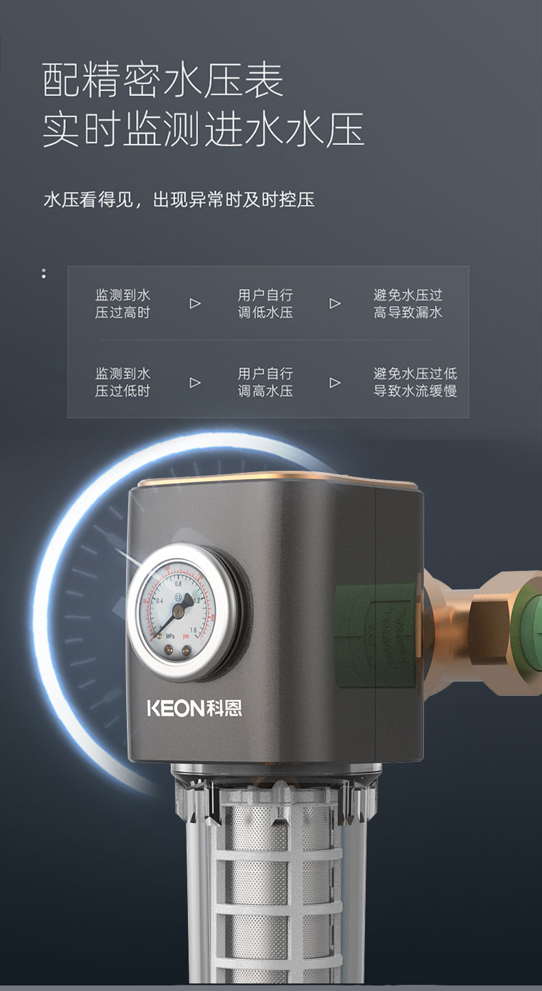 • 配精密水壓表,實(shí)時(shí)檢測(cè)進(jìn)水水壓