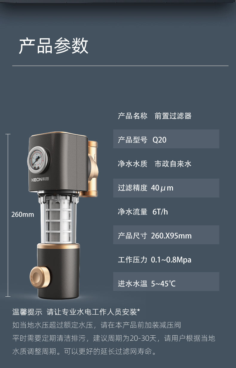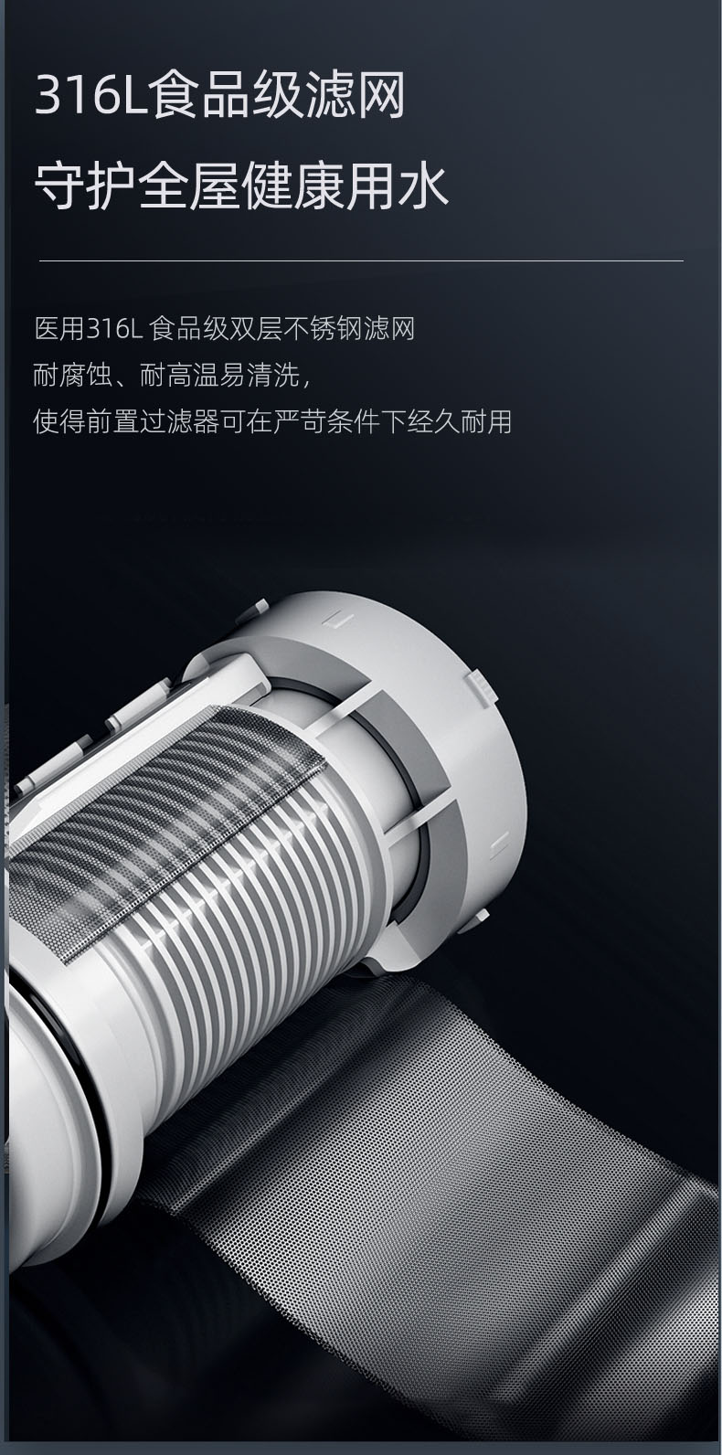 • 40μm過濾精度,精密不銹鋼濾網(wǎng),提升水質(zhì)