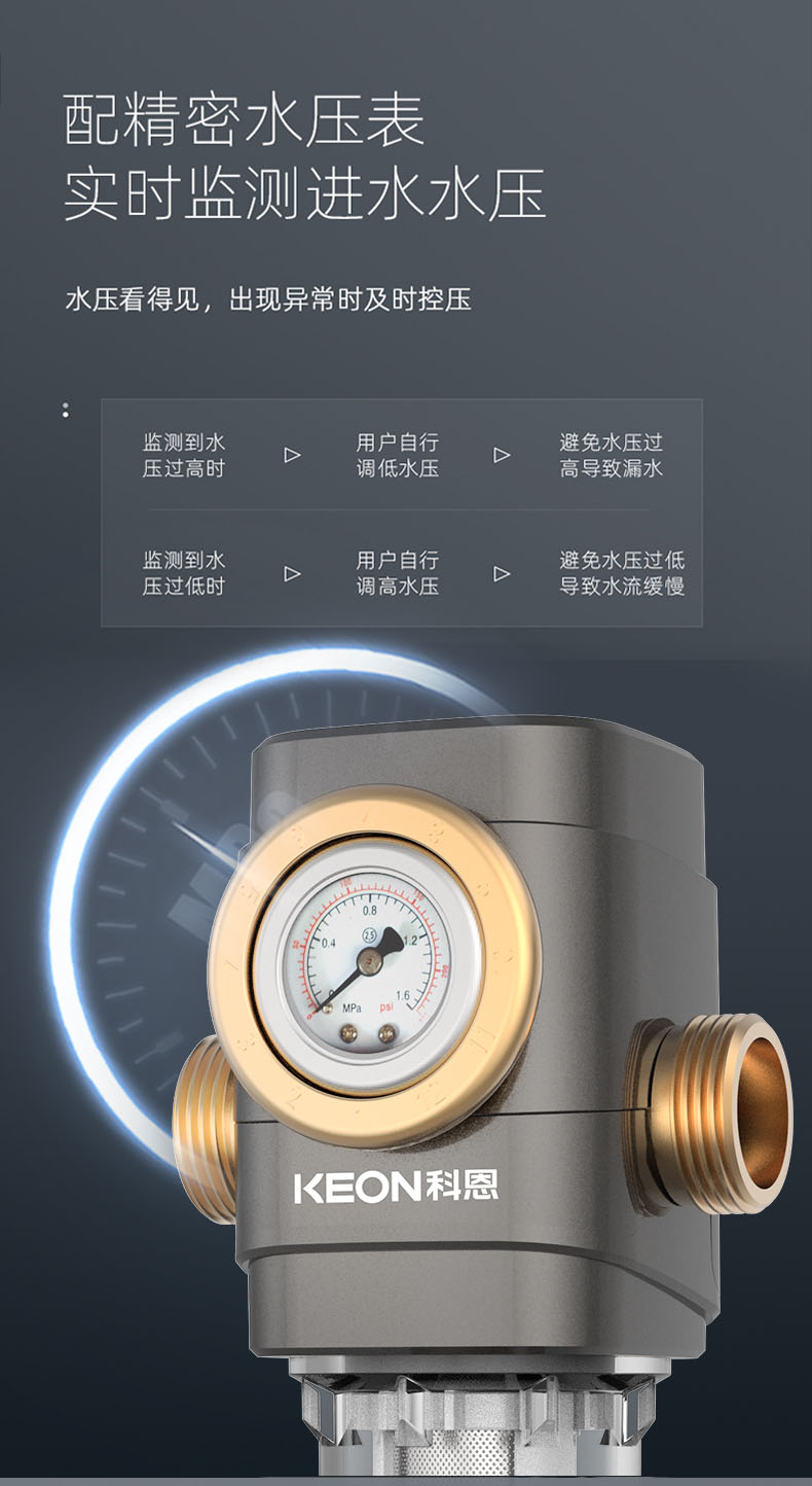 - 配精密水壓表,實(shí)時(shí)檢測進(jìn)水水壓