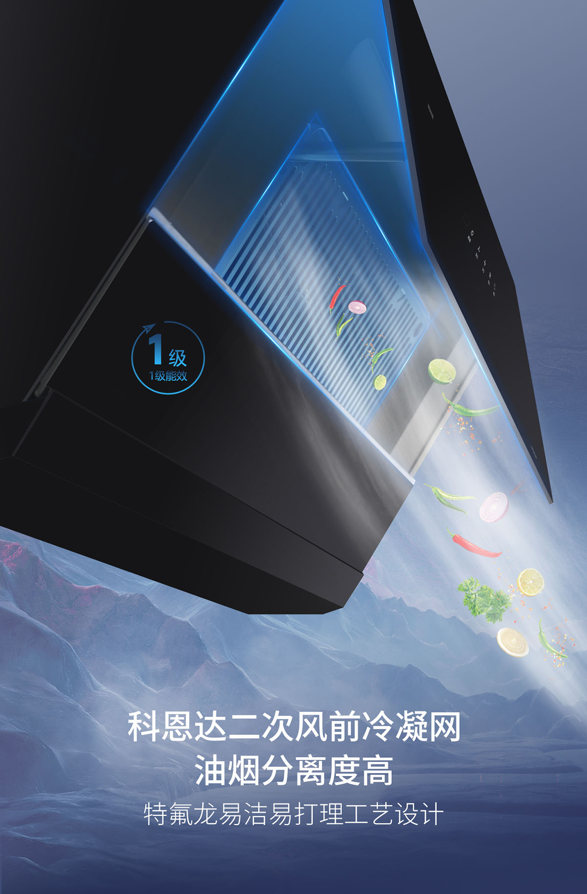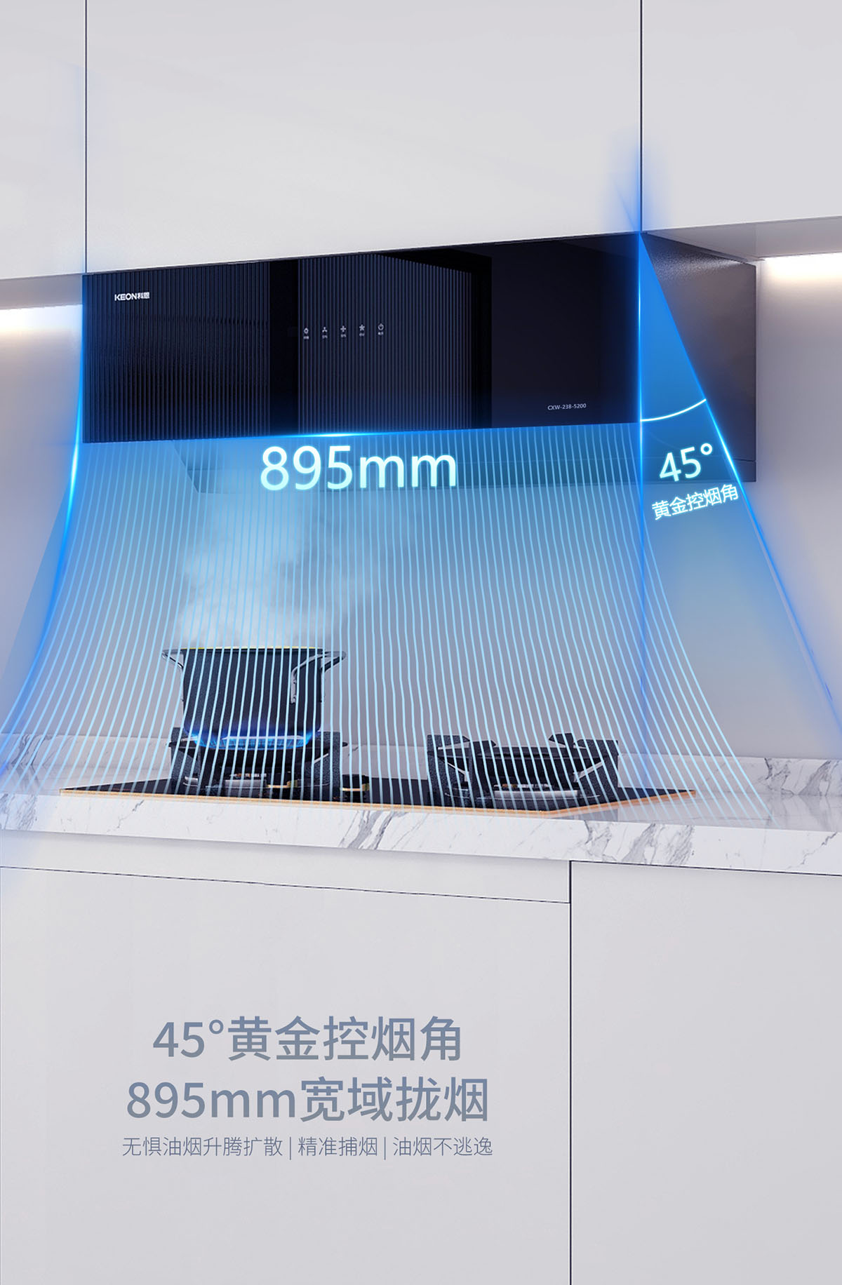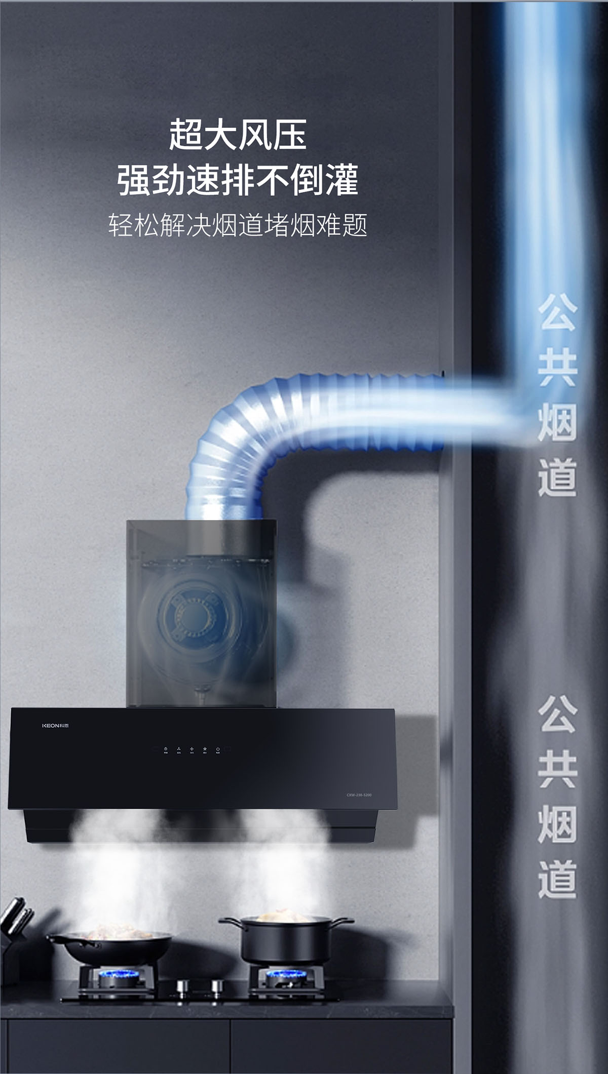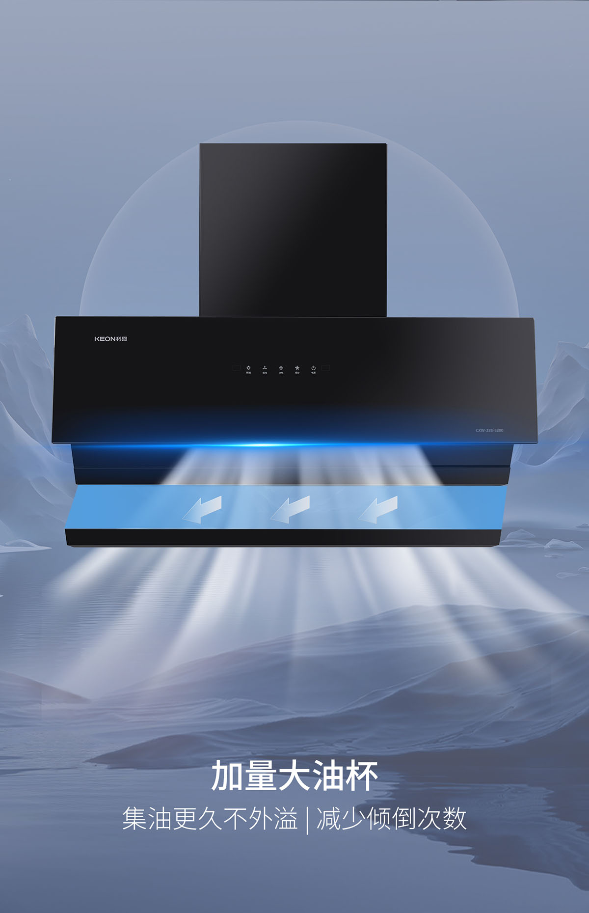 • 23m³/min颶風(fēng)吸力,瞬吸油煙,打造無煙廚房