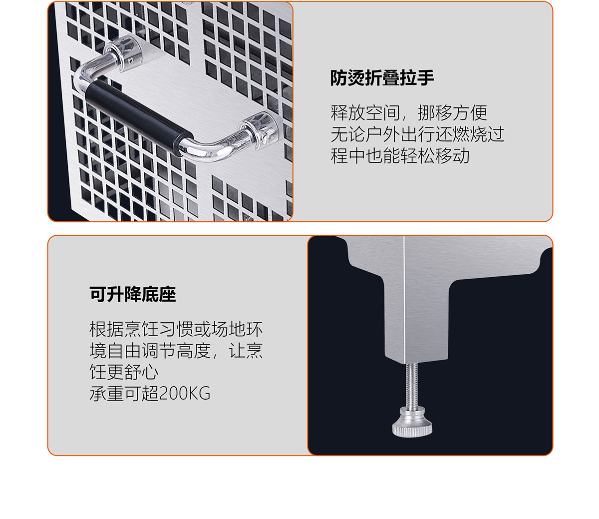 - 飛檐式防滑鍋架,堅固耐用,聚熱安全