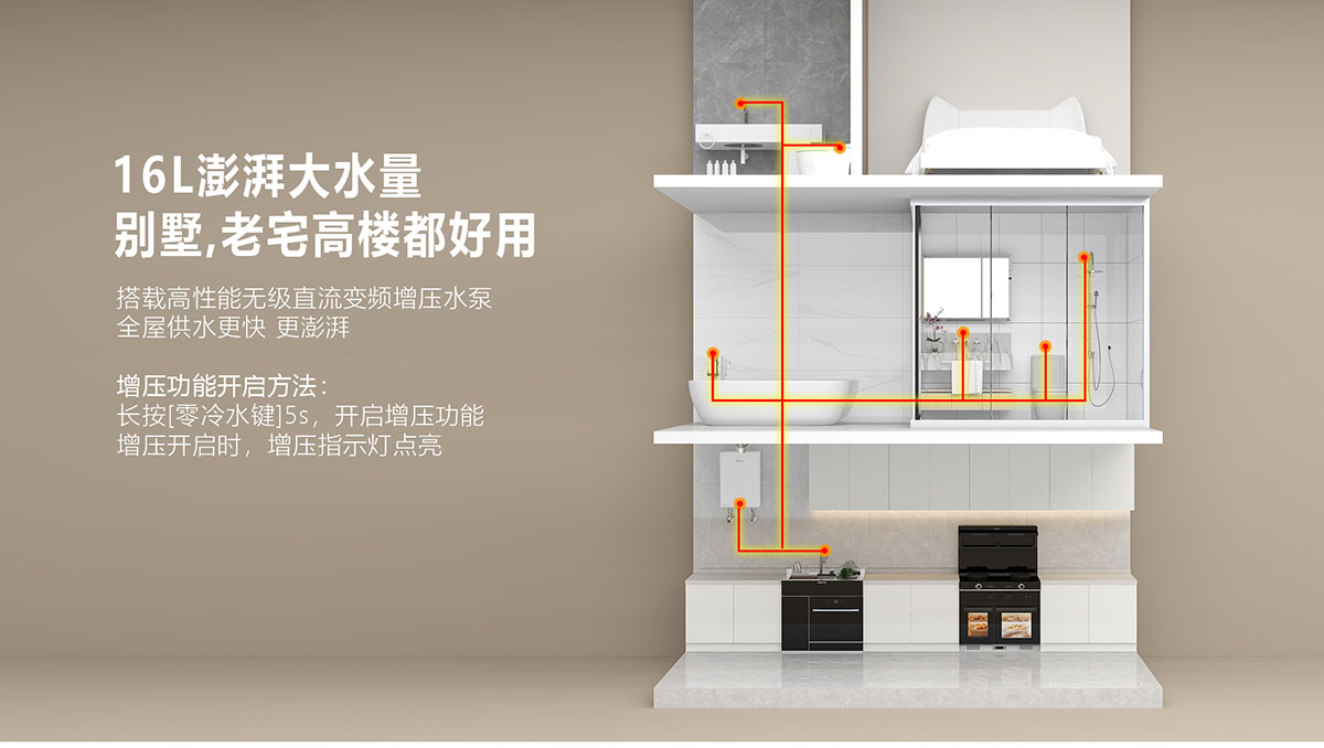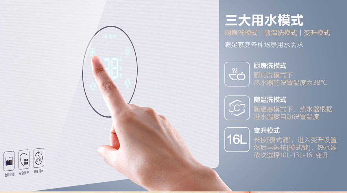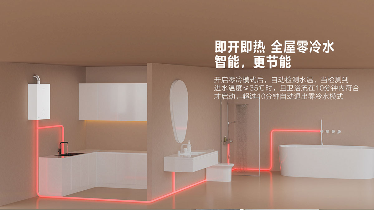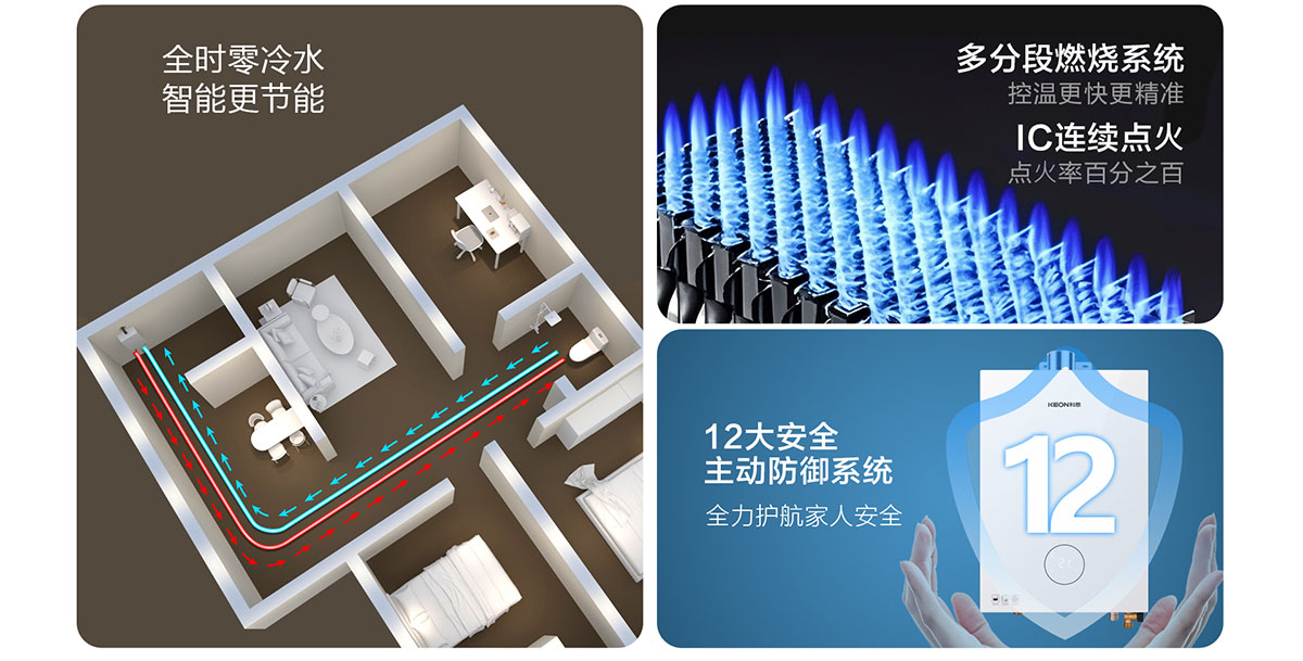 • 采⽤分段燃燒技術(shù),⽔溫調(diào)節(jié)范圍更廣,速度更快