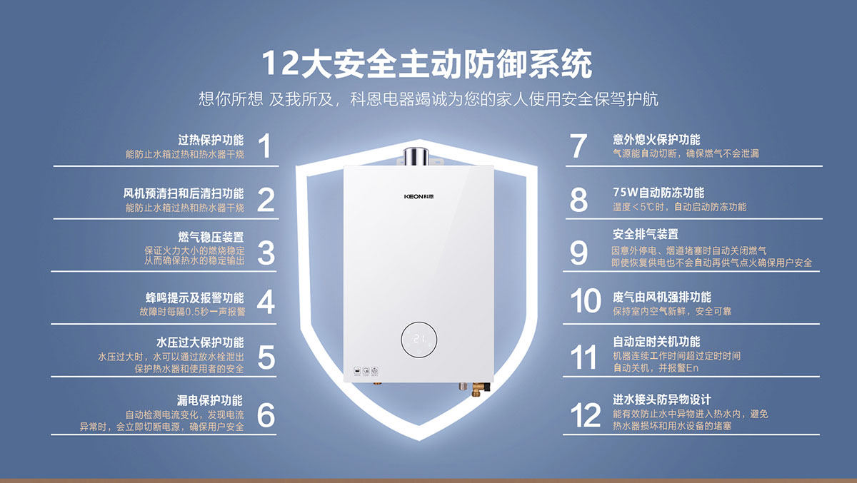 • 設(shè)有過熱保護(hù)裝置,防⽌⽔箱過熱和熱⽔器“⼲燒”